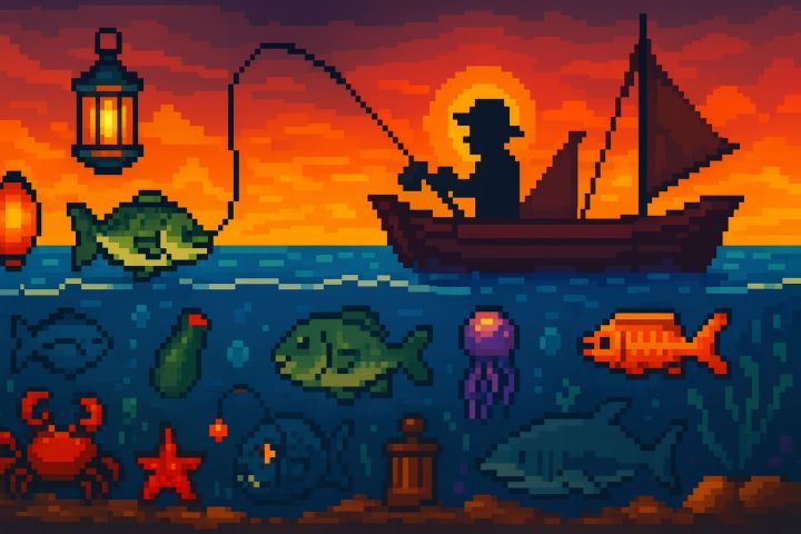 此游戏版本,是为了参与taptap聚光打游戏大赛的(加急赶出来的啦,多体谅体谅),后续会有正式版本。在设计[垂钓四海 前传]时,用的是简化模板,优先展示的是内容的可玩性,所以后续如果有什么推荐内容可以联系一下,或者去评论区留言也可以。游戏会经常更新(可能叭?)增加许多好玩的内容(内容确实好玩)海域里充满了未知,融合了克苏鲁,宗教,天使神话部分体系, 都会在后续内容开启,敬请期待。 1. 开局