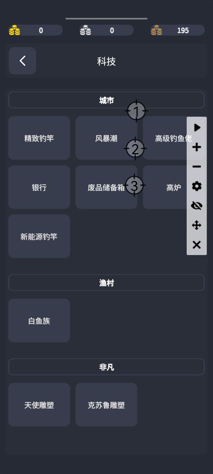 先占个🕳️,等稳定版全图更新。目前为通关建议(引言:oi 各位老登小登好久不见 这里是路人林 目前正在和老登们开荒施工 小登注意以下建议 都会有用的 正式攻略等稳定就整(在咕了,在咕了以下是目前阶段给的建议。1、开局先装配钓竿 默认是不配置的 钓竿升级目前看是靠是垂钓次数 后面还有环保钓竿等钓竿 记得升级。2、铜币记得先升级废品收购站,升够能挂机刷铜币后无脑刷科技 点出