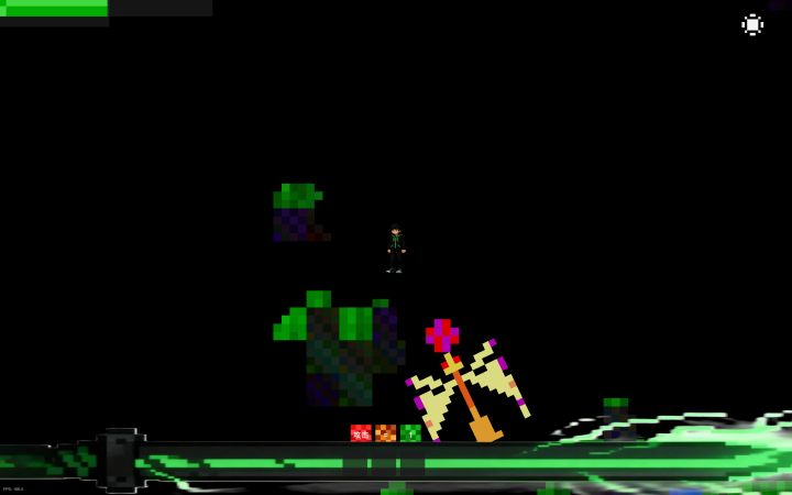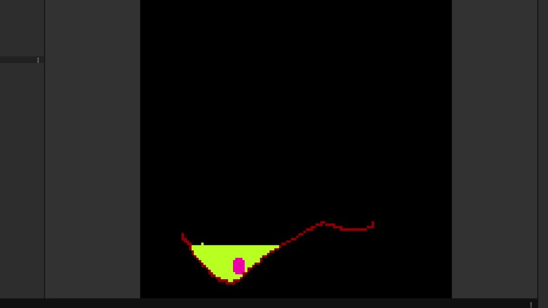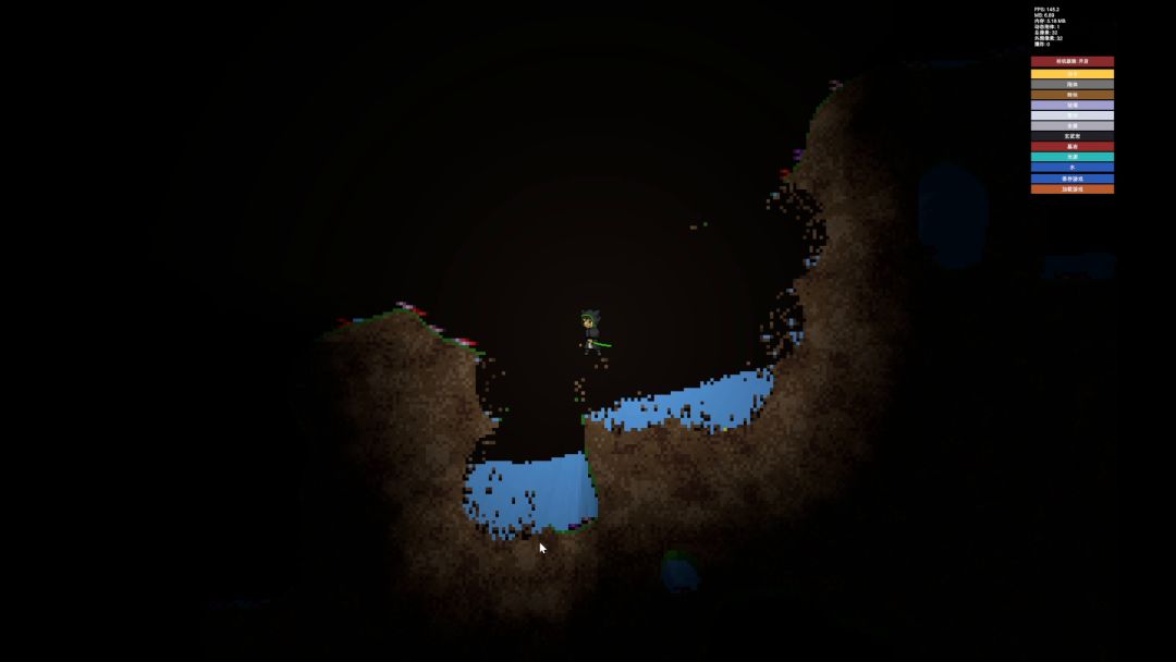 游戏中目前的区块内有20*20*4*4的像素块,对此我研制了一套可以模拟固体和液体的0.1代模拟引擎。 新引擎支持无限世界和动态区块加载理论可以替换游戏中目前的水源方块了。所有粒子是完全独立的,且拥有自己的行为逻辑。可以自由绘制创建固体、液体、气体和角色单位。 粉色的物体就是角色的碰撞体(也是像素引擎中重新实现的),可以实现高性能像素刚体碰撞、通过液体等。同时空气模拟可以在液体中产生气泡,模拟液体