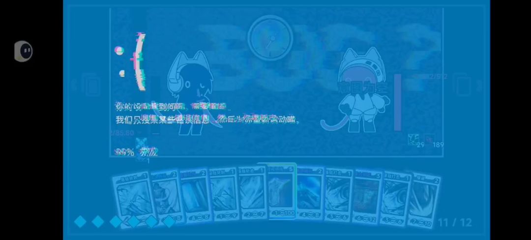 如视频(难度4),手速够快可以让敌方变成点数3的“空白意图”(未定义变量?)并失去那个意图原有特性 实测所有意图只要够快都能用 不确定电脑版有没有同样的效果 也许是个彩蛋? 理论上可以用这个效果一直抗猫猫秒杀