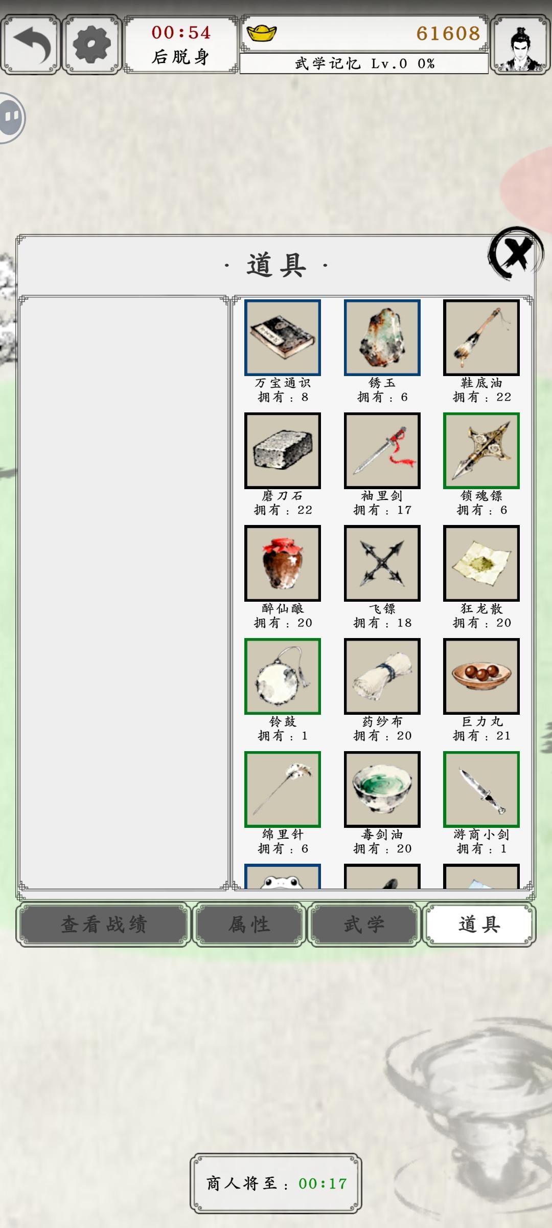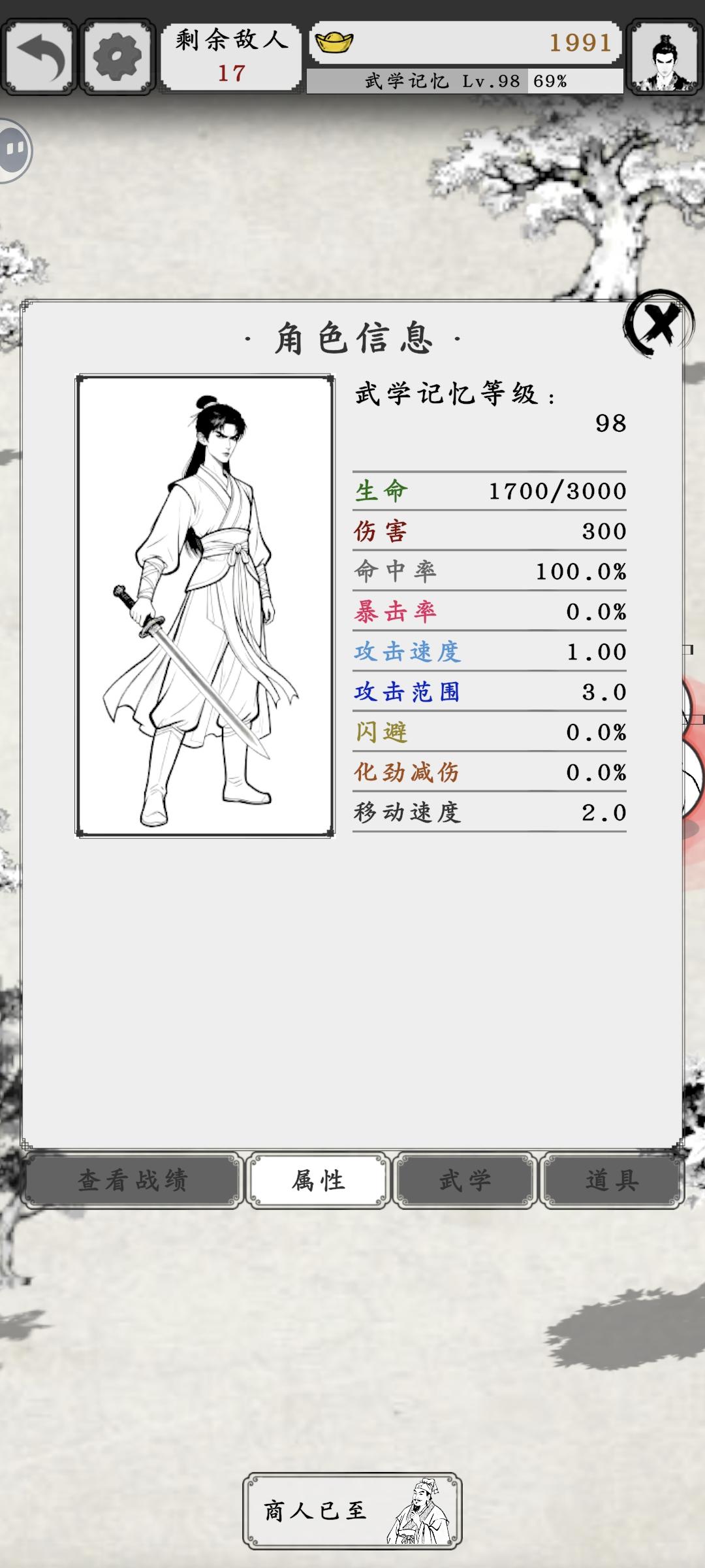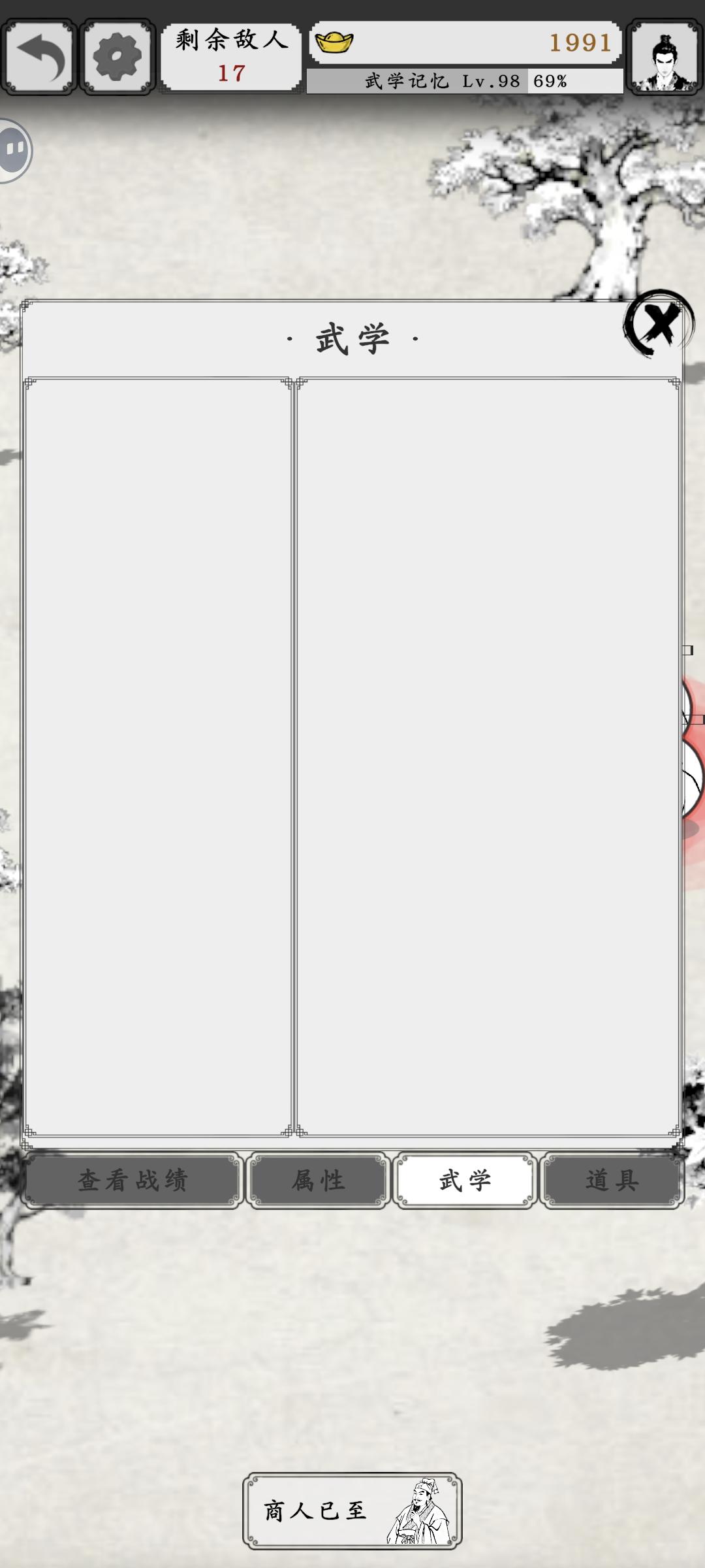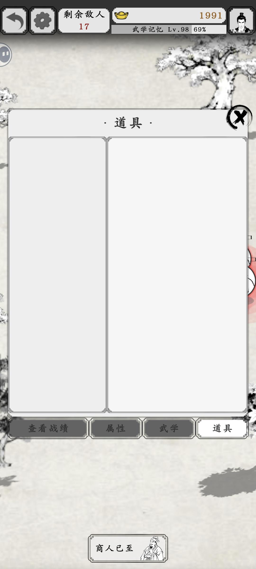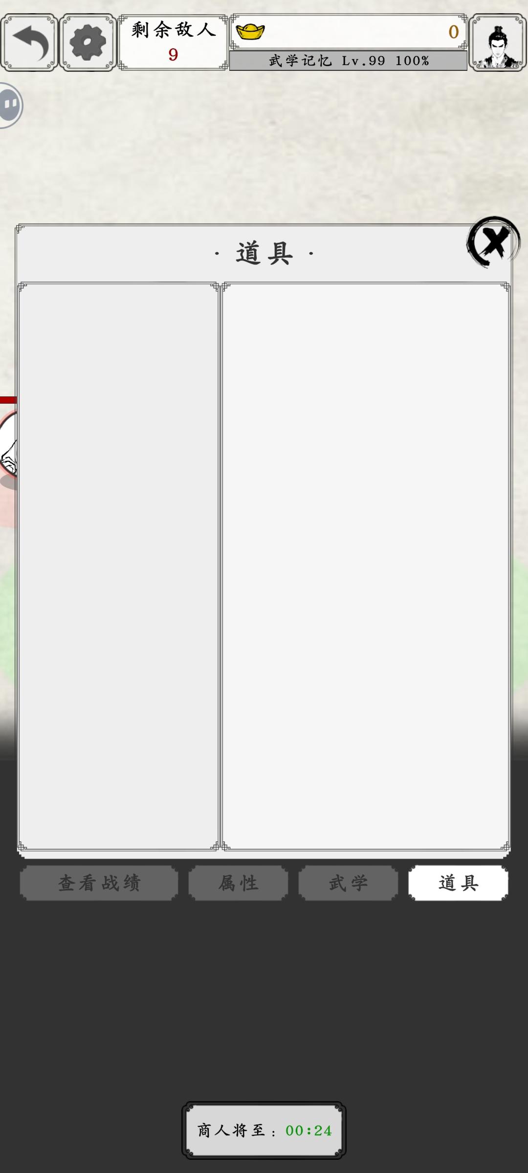 打第一关正常,我第二关道具和武学都消失了,重进几次都这样,攻击力直接变300了,连小怪都打不动了#bug反馈