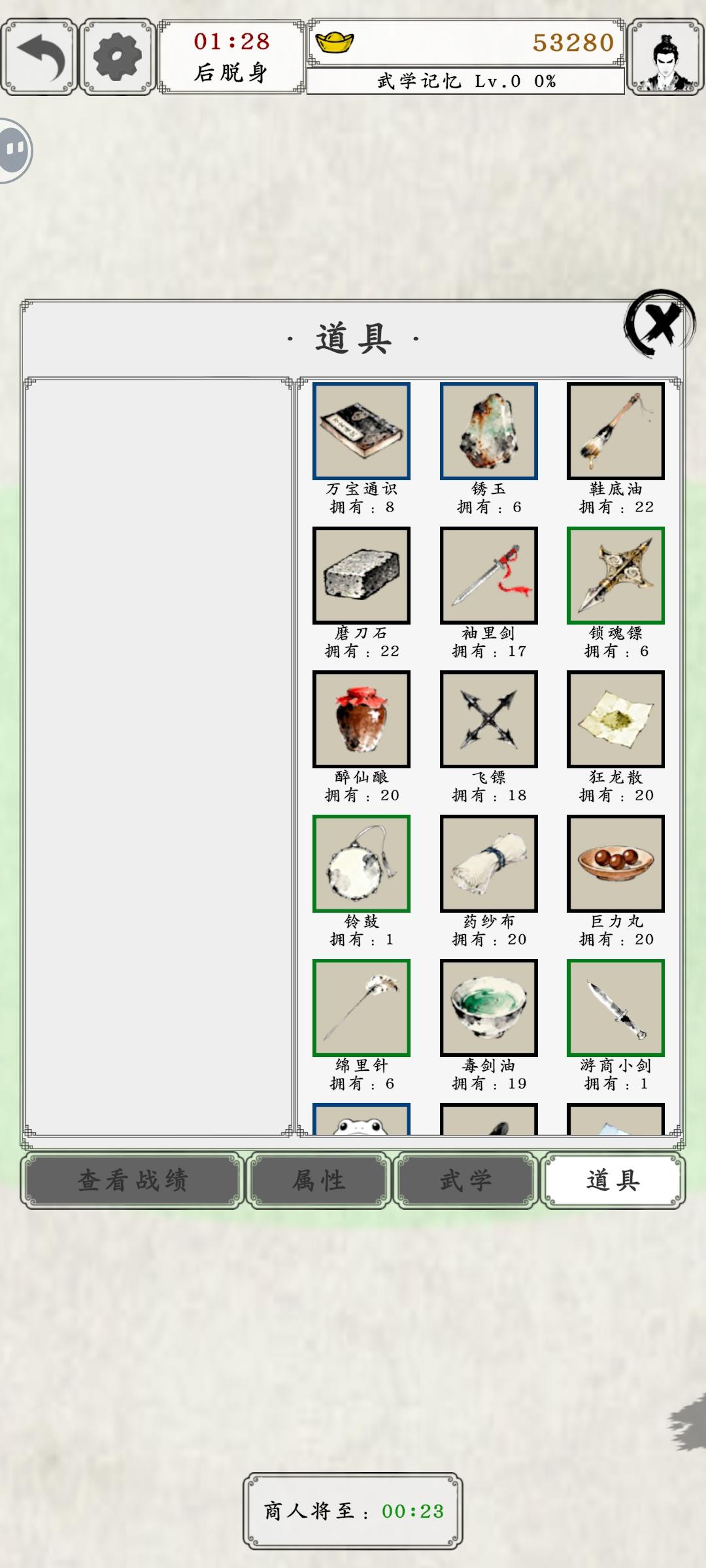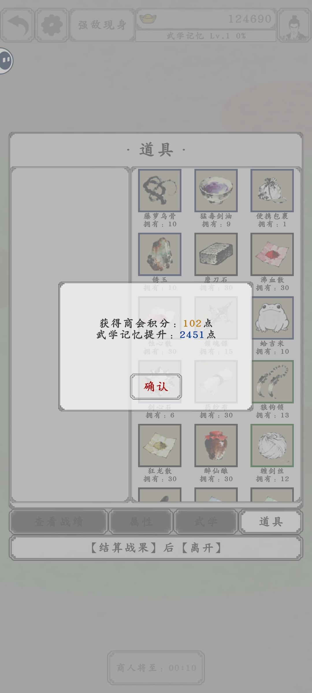 攻略方面就是商会多刷新,多买便宜的道具,然后过关后一直选战利品数量最多的那个就好。这样可以让你以最快速度满道具。场外升级优先剩分裂攻击,然后升级攻击范围这样就乱杀了
