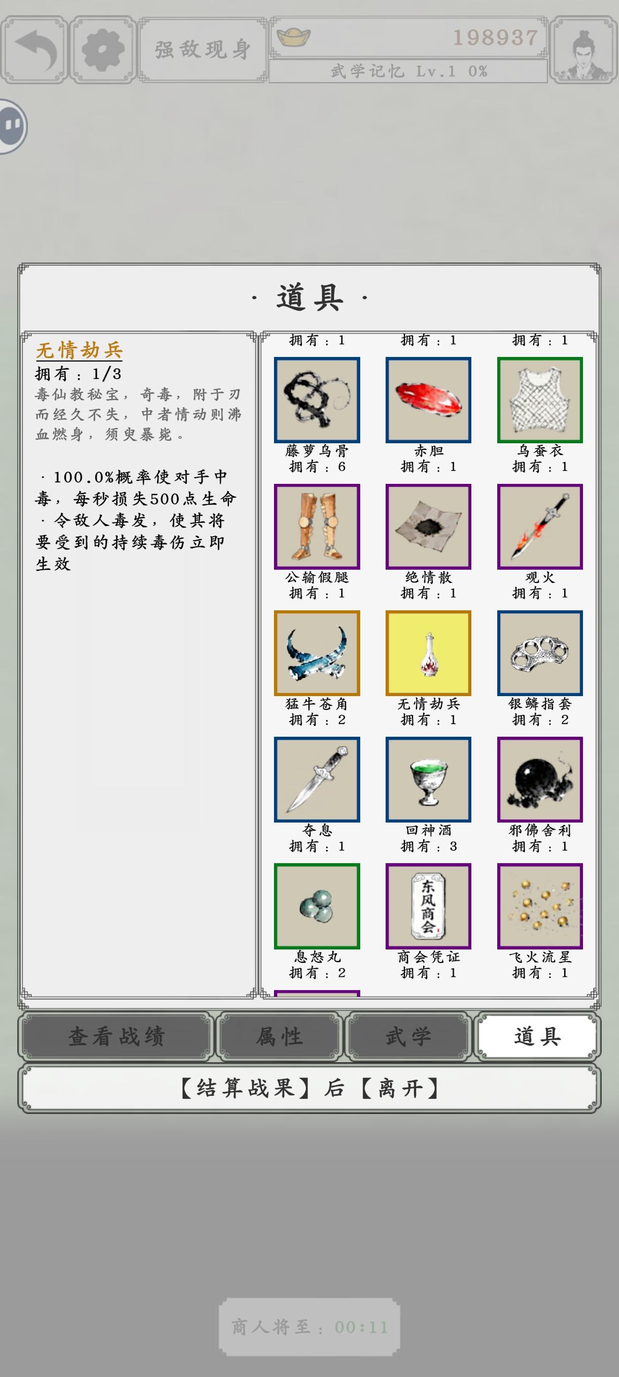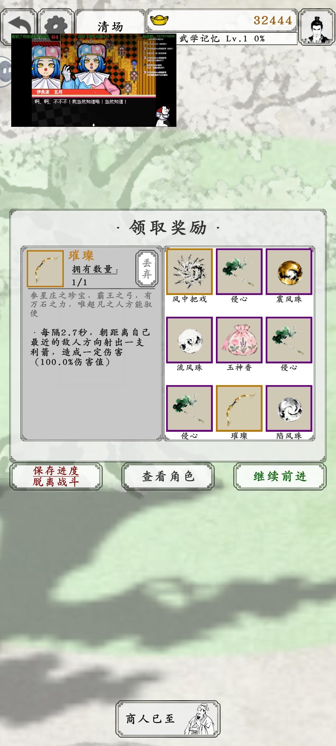 打第一关正常,我第二关道具和武学都消失了,重进几次都这样,攻击力直接变300了,连小怪都打不动了#bug反馈
