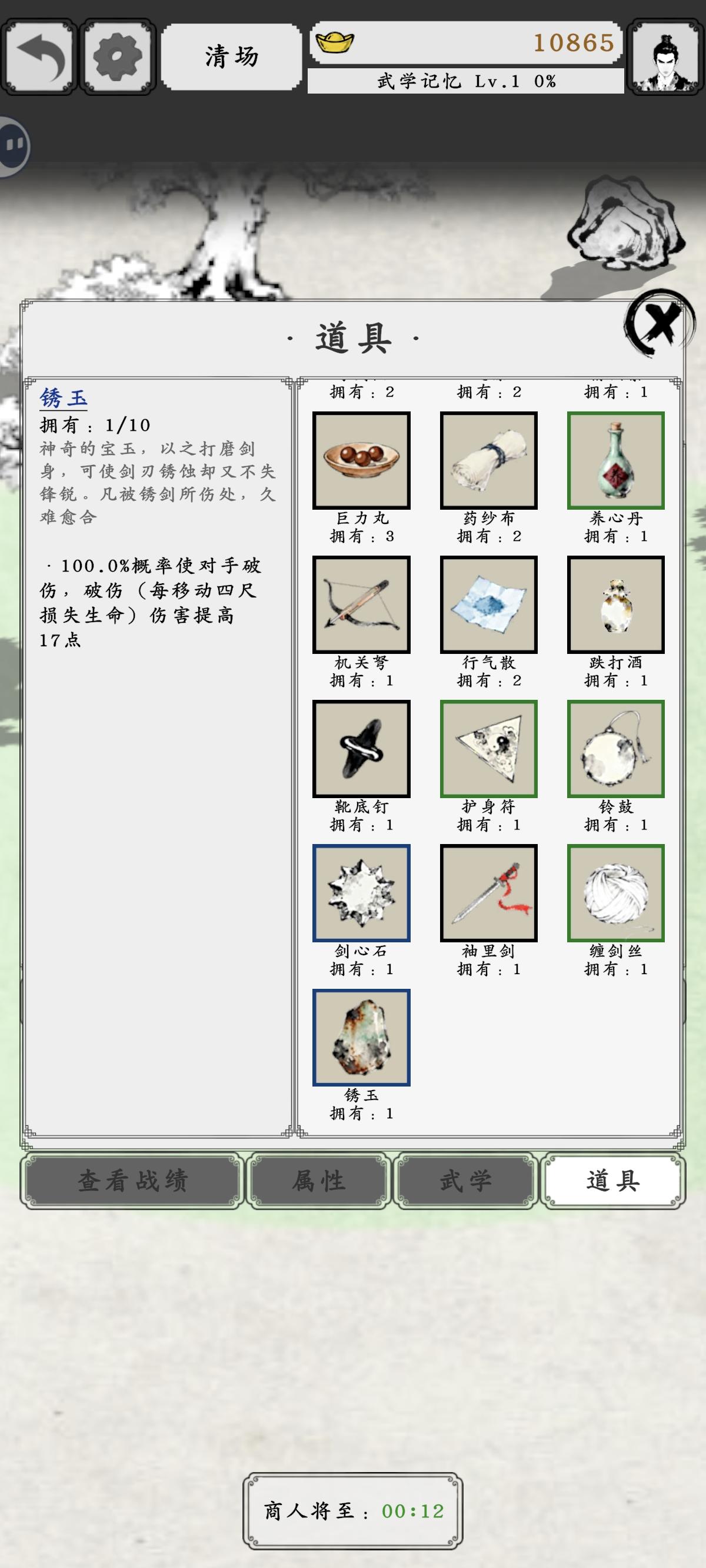 打第一关正常,我第二关道具和武学都消失了,重进几次都这样,攻击力直接变300了,连小怪都打不动了#bug反馈