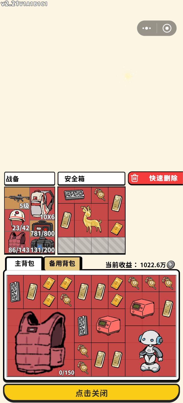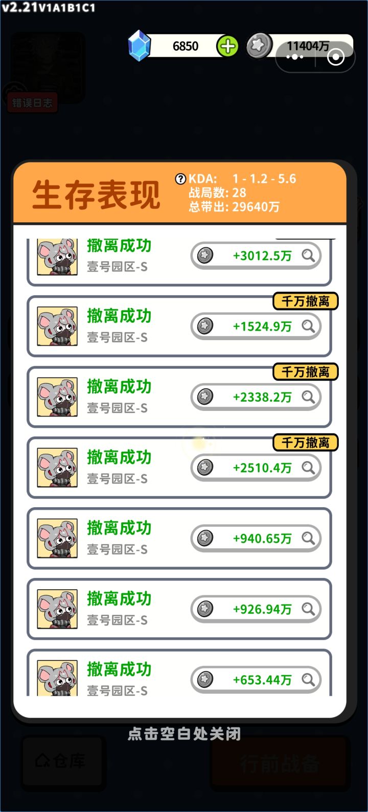 前两张照片是在同一局中开出的两次大红雨,最后吃不下了,还留了一堆怀表和金条在那里,撤离价值5000万(最后一张图)