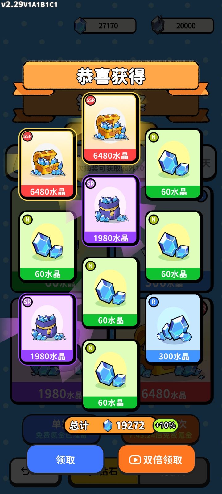 完完全全从新手开始1.进游戏为该界面 先将能领取的福利全部领取 重要的一点是呱呱补给包 新手看广告领取呱呱皮肤和游戏货币2.星星币 游戏基础货币 可以买各式各样的战备以及藏品商店的藏品3.钻石 极其重要的游戏货币 使用后可以打开局内未解锁的房间(房间内物资极其丰富) 兑换预制券 以及开启局内DMA(外挂) 钻石可通过广告获取 有免费单抽以及看广告获得的十连抽 4.特权卡 看广告解锁 都是非