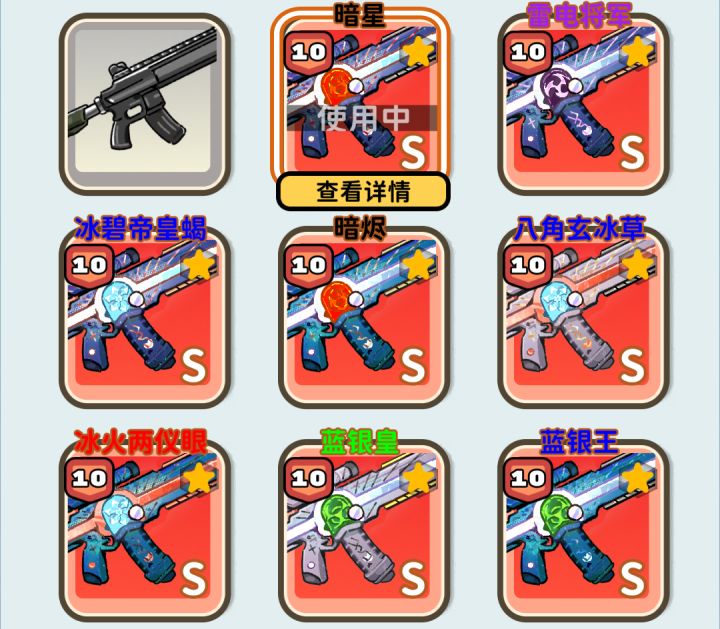 解答一些常见问题(顺便晒晒我的枪皮)强化:强化属性与枪械品级品质无关(优品不能)只跟枪械强化等级有关,不同级别有不同的枪口特效,满级由于概率具体所需材料无法估计,不过正常是几万碎钻,大几百金属和几千万星星币枪皮基础:品质分优品,极品,神话。磨损度分c,b,a,s(磨损度越低越好)。一把枪被策划拆解成了六块,共四种元素,雷火冰毒(毒最拉胯)神话s的爆率:难说,不过正常一百万肯定