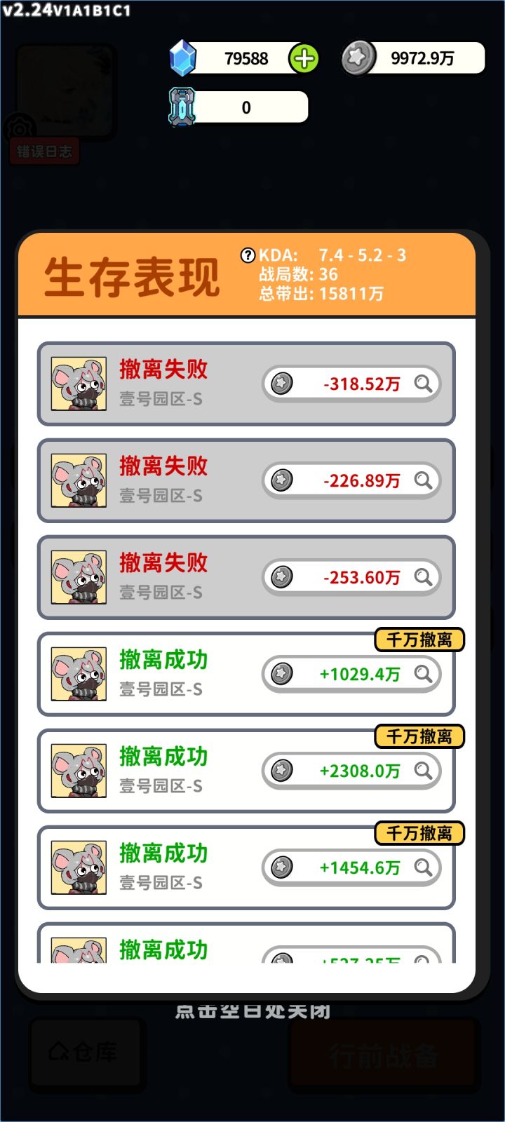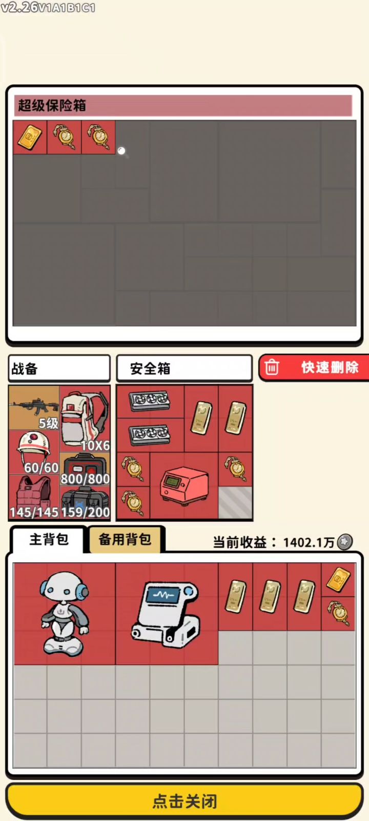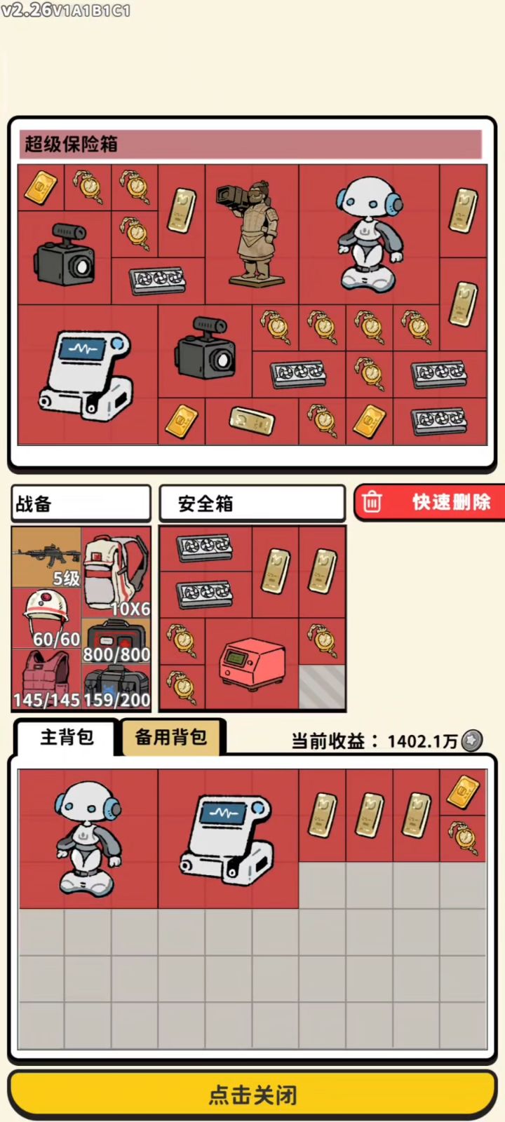 前两张照片是在同一局中开出的两次大红雨,最后吃不下了,还留了一堆怀表和金条在那里,撤离价值5000万(最后一张图)