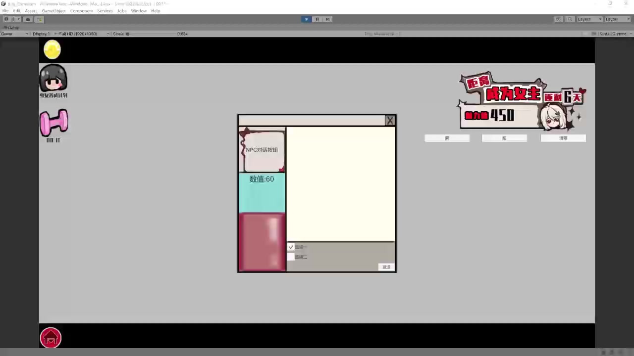 (。◕ˇ∀ˇ◕)各位好!在奋斗一个晚上后,我们的ui系统更加完善了~以下的演示视频分别由@浅鸦 老师 和@陈老师提供 (•‾̑⌣‾̑•)在第一个视频里,我们已经可以看到了日程安排、聊天框、数值培养部分关联。我们的npc咲琴终于可以跨越窗口来实现日程的安排了。但“跨越”的视觉体现部分目前还没完善(包括窗口切换时的加载logo,以及咲琴退出和重新回到主窗口的熄屏和花屏效果)另外,咲琴在