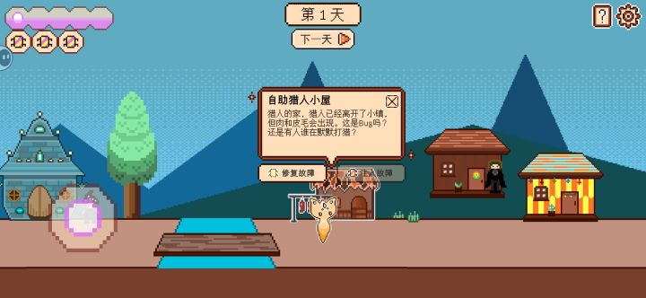 以天为单位进行游戏,每一天可用注入的bug和可修复bug都有数量上限,可以按照喜好自由使用。过天的时候小镇会有新闻播报,直至第五天游戏结束,小镇播报趣事不断。