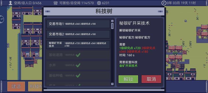 今天来汇报下新版本开发进度。 优化了道路美术贴图。 添加了领地解锁机制,需要消耗道具来扩张领地,可以选择多种地形,不同地形有不同的资源分布。 科技树新增了大量科技。 重做了居民AI,增加了饥饿值和体力值设定,现在居民有了吃饭,睡觉需求。不再只会一味的工作! 接下来将会进行战斗系统开发,待战斗系统完成将会发布新版本,请敬请期待~ #风暴领主