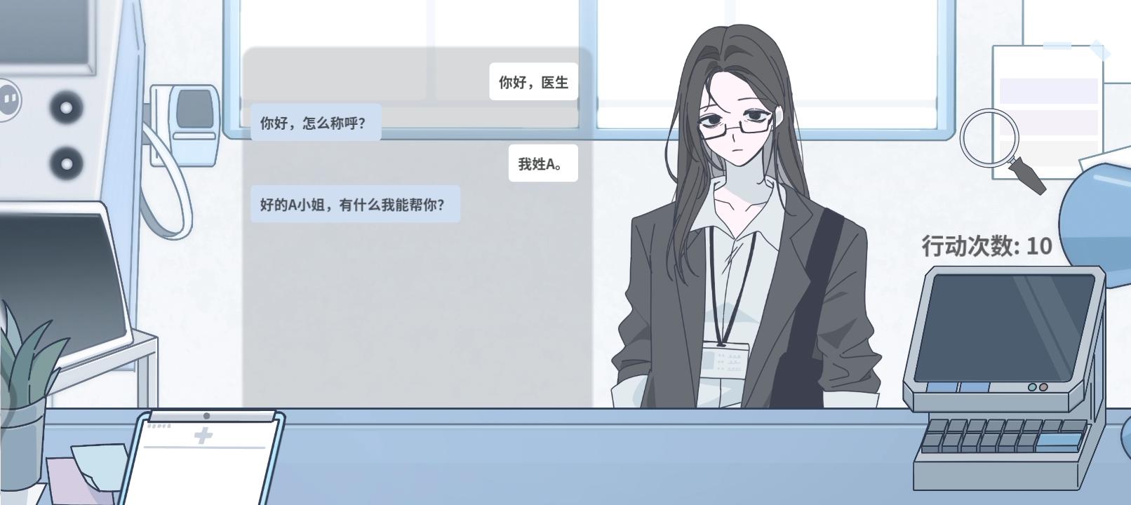 因为对话框的形式看着像线上咨询,还以为人物是玩家扮演的“医生”,没仔细看过。最开始不知放大镜可移动。知道后一直在想把放大镜移动到哪里?A小姐都不在画面中。玩了快十分钟,过了几次,才发现:不对,好像A小姐就在我面前。好吧,鄙人确实有点瞎还不太聪明。