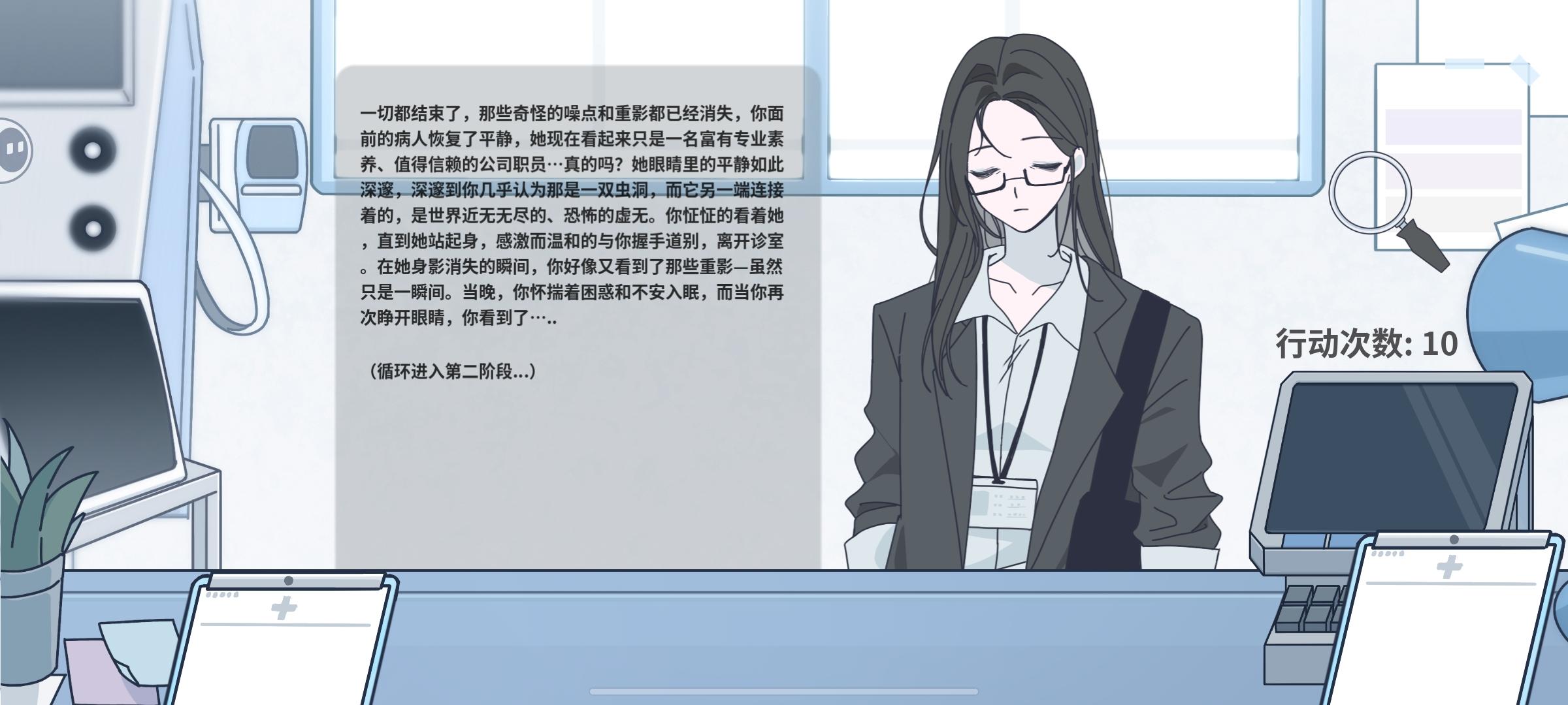1.素材不错,以医生看病的方式,来反应现实生活中的某些情况(时间循环不会在生活中发生,但这是游戏可以理解)