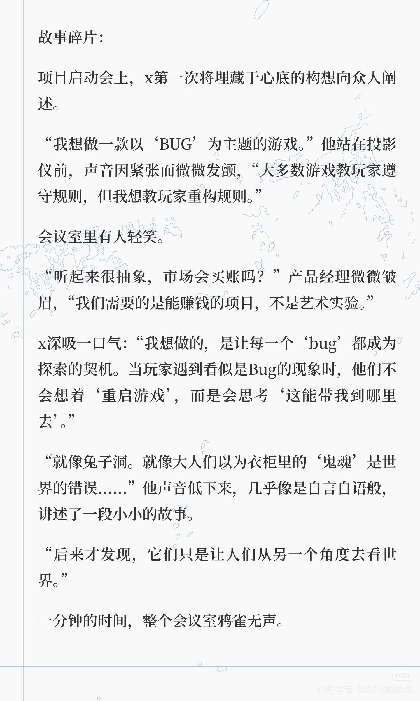 hi大家好!我是《误构Misweave》的文案姜丝~我们组流程大概是这样~讨论完设定后我创作了游戏故事,之后美术、程序、音乐老师根据故事基调进行各自的工作~![[表情_泪目]](https://img.tapimg.com/market/images/210616a5579a37160baaf2d9d0028664.png)