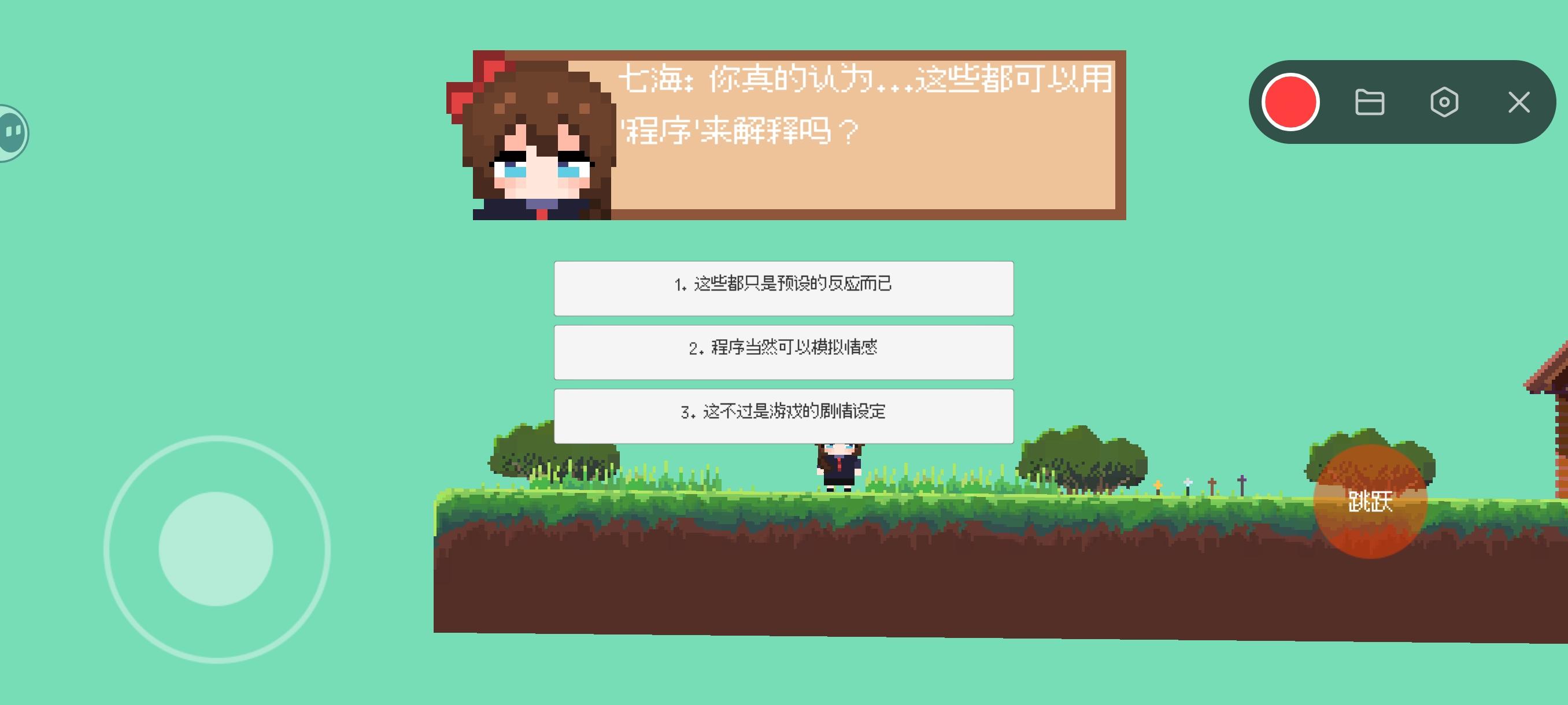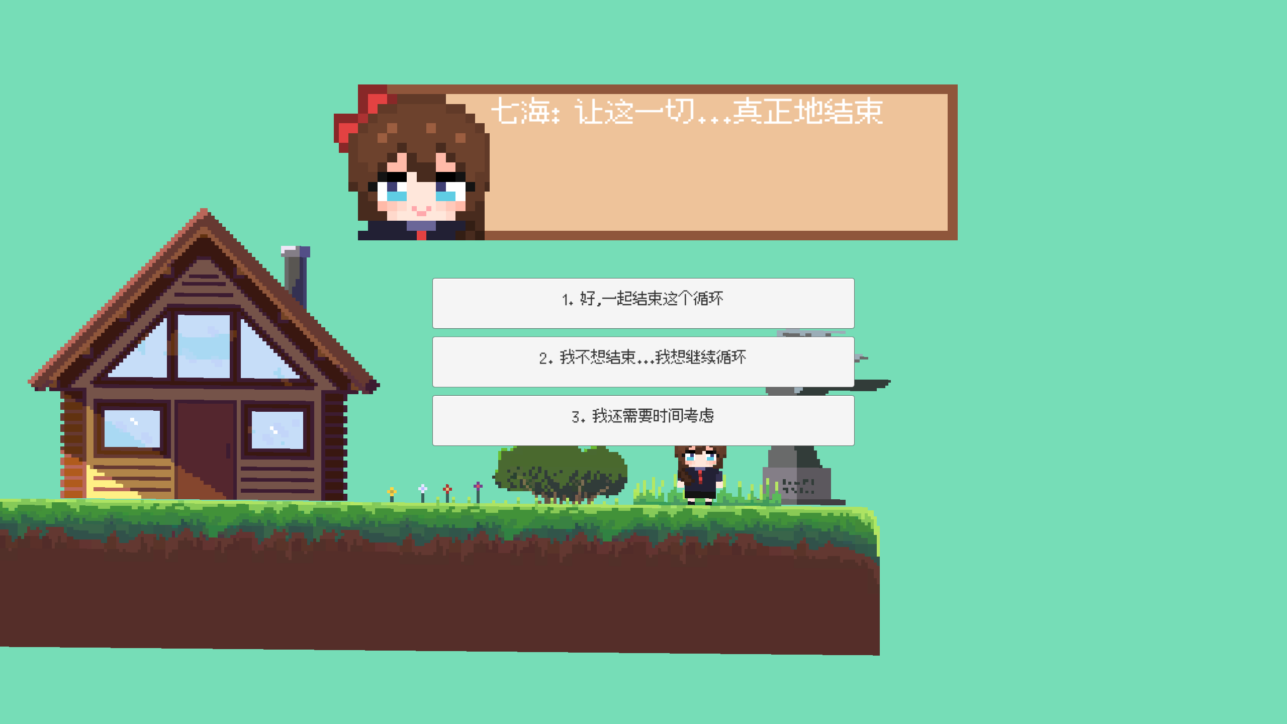 很可爱的像素画风,背景音乐也很治愈,听着就很舒服。七海宝宝真的很萌,从你说你记得我的每一次说的话,每一次的选择时,你就不是一个冰冷的代码,最后逃离循环之后,希望七海宝宝在自己的世界也要有更多的朋友。反正玩完之后我挺意犹未尽的。我说不出什么专业的建议,但是整体带给我的感受很好的ദ്ദി˶ᕑᗢᓫ)✧,在凌晨遇见七海宝宝,这一天真的很开心(៸៸᳐⦁⩊⦁៸៸᳐ )੭