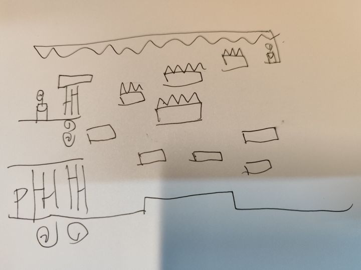 今天开了第一次程序会议交流关卡进度,另外几个做3D关卡的兄弟还在搭场景写机制,我的三个2D关卡已经做成第一关的原型了,第二关也设计好了,预计明天连第三关也能做出来了,是时候给美术们上一下强度了,整个美术需求表一眼望过去就我写了一长串。不知道你能不能看出第二关是怎么设计的呢,我直接来解读一下吧:去往终点的路上有两道机关,需要按钮1和按钮2打开对应的门,而按钮2前面的门在触发任意按钮都会向上或者向下