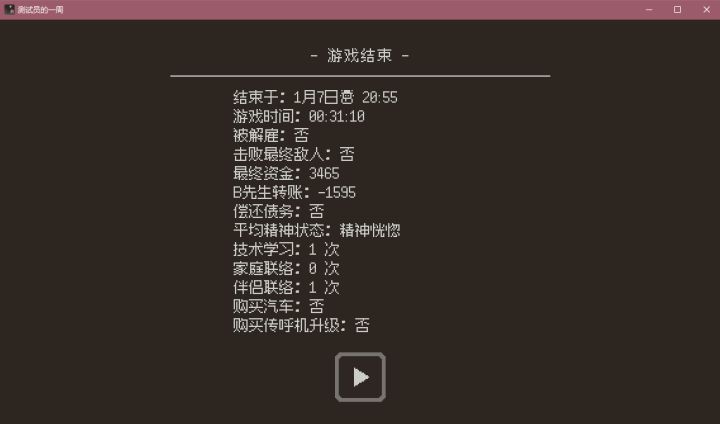 玩家作为游戏测试在公司的要求下进行不同游戏的测试游玩,如果出错次数过多会被公司开除。