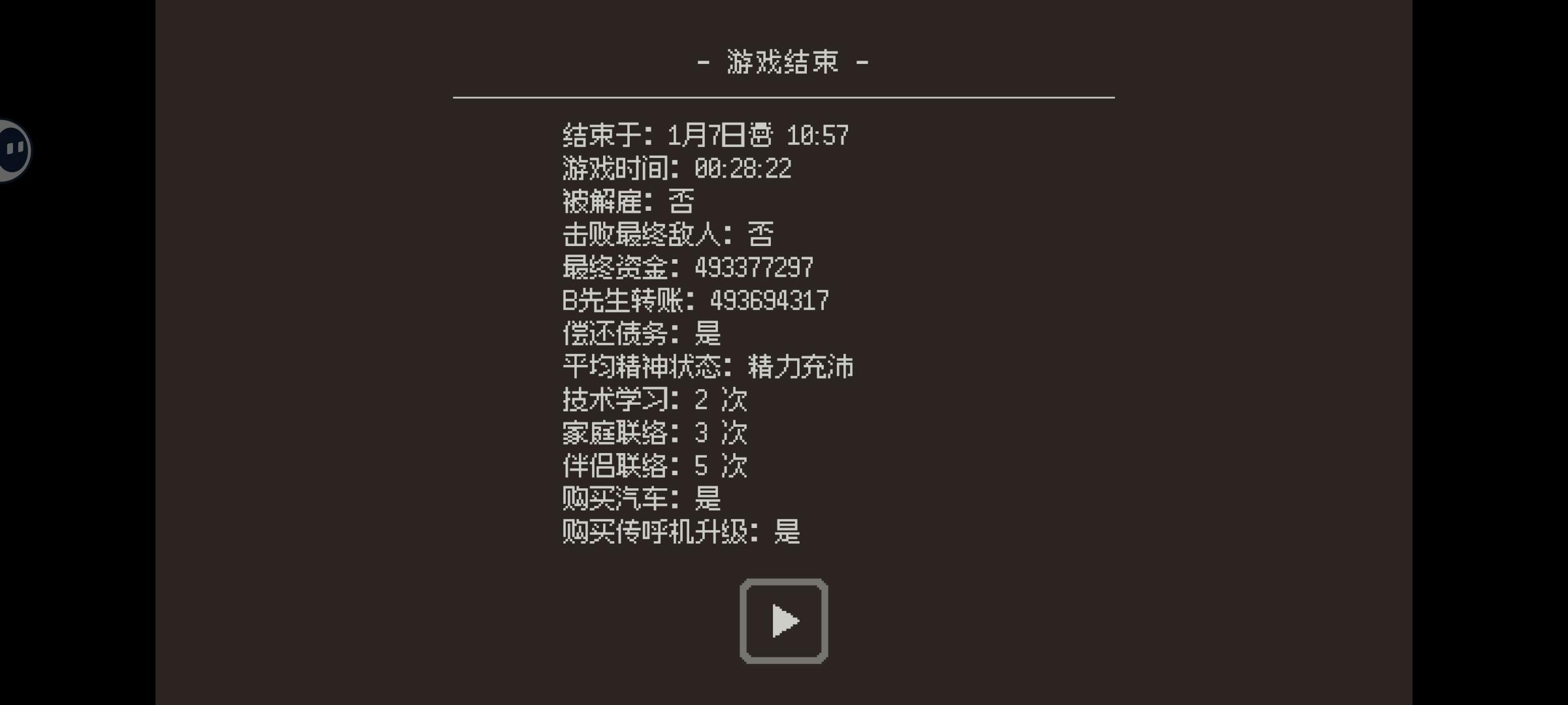 最后和女朋友的关系更进了一步,有了一定的技术能力,还有钱,家人想要我再多关心一下他们,一周联系一次他们觉得不够😂,B先生是个好人(主要是钱给得够多),这结局我很满意~~