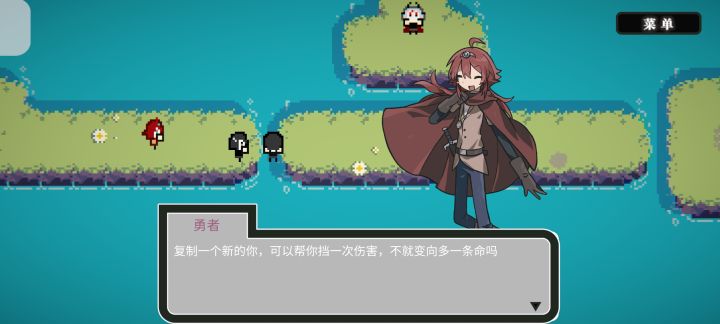 结局主角走后我试探着按了按传送,居然真的能回来,按治疗凭空出现主角的时候我简直想仰天长啸太有趣了我真聪明,我还一路走回去想和勇者再说几句呢可惜机制又变成自动追随了,要是有彩蛋就好了。不过作为一个游戏它已经很完整啦,游玩过程轻松有趣,剧情简洁明了不拖沓,很棒!如果作者出新作的话我会继续支持滴,期待