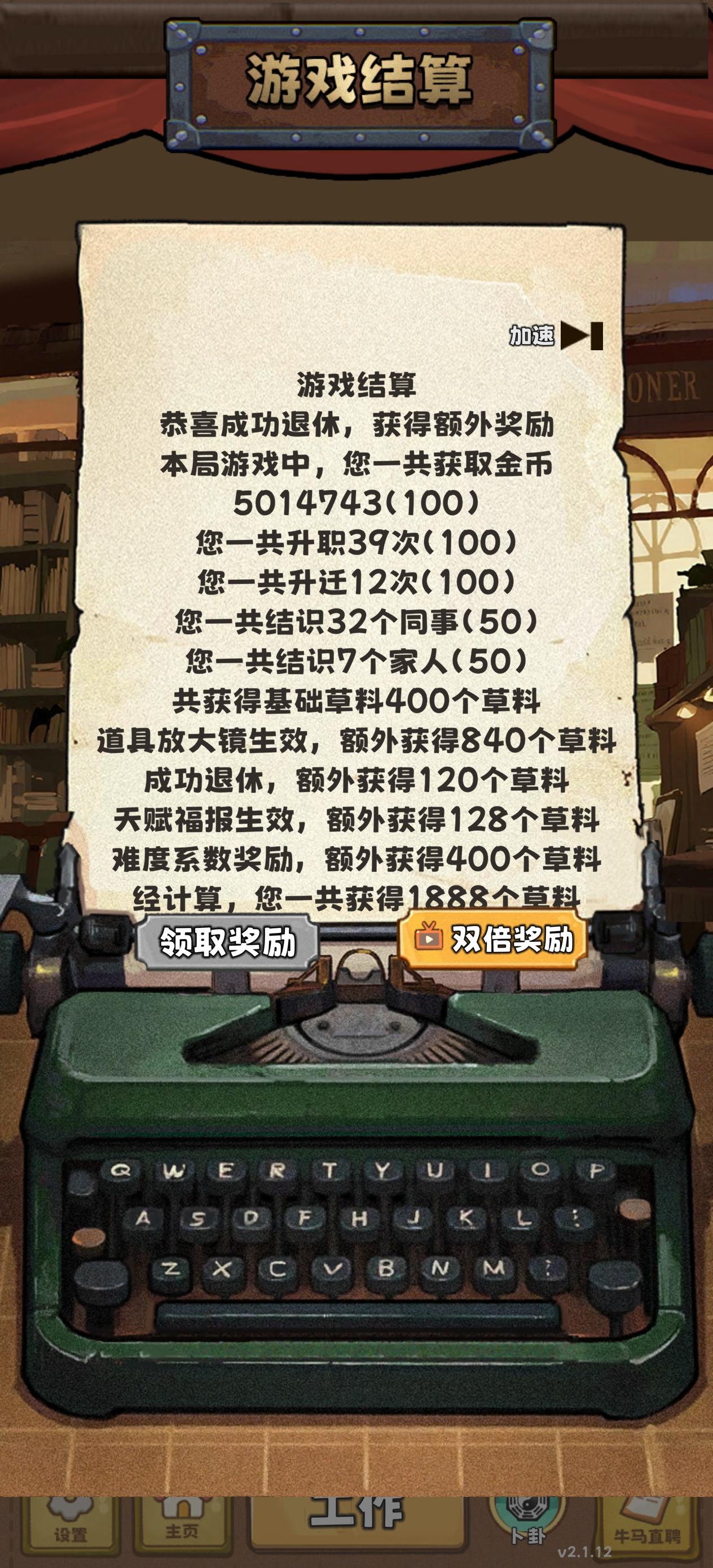 一局纯爽局,先全买马脸面具耍黑客技能,后面只要工作一次就能改,不断换工作刷同事,后面全换放大镜。