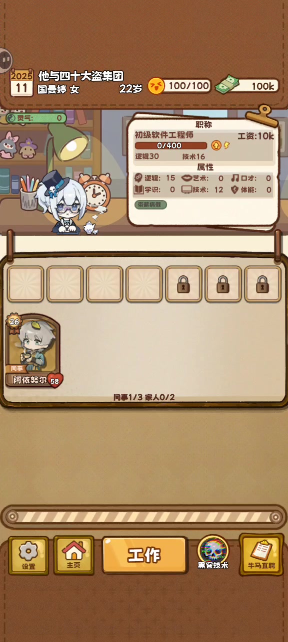 你游现在问题颇多,我做了一个大概的统计,出新内容前先处理一下吧1.UI问题,个别文字描述,数值过大是会出现文字重叠,框容不下数值2.技能BUG,现有技能,黑客技术有严重影响游戏体验的BUG(当修改数值时不变动数值,会导致该数值留存至下一次修改)3.游戏内容中公司运行状态随机化(因为看不到公司运行状态,所以经常导致自己莫名其妙被开除,莫名其妙升职位)4.结算时跳槽计数方式错误或者不计算或者不