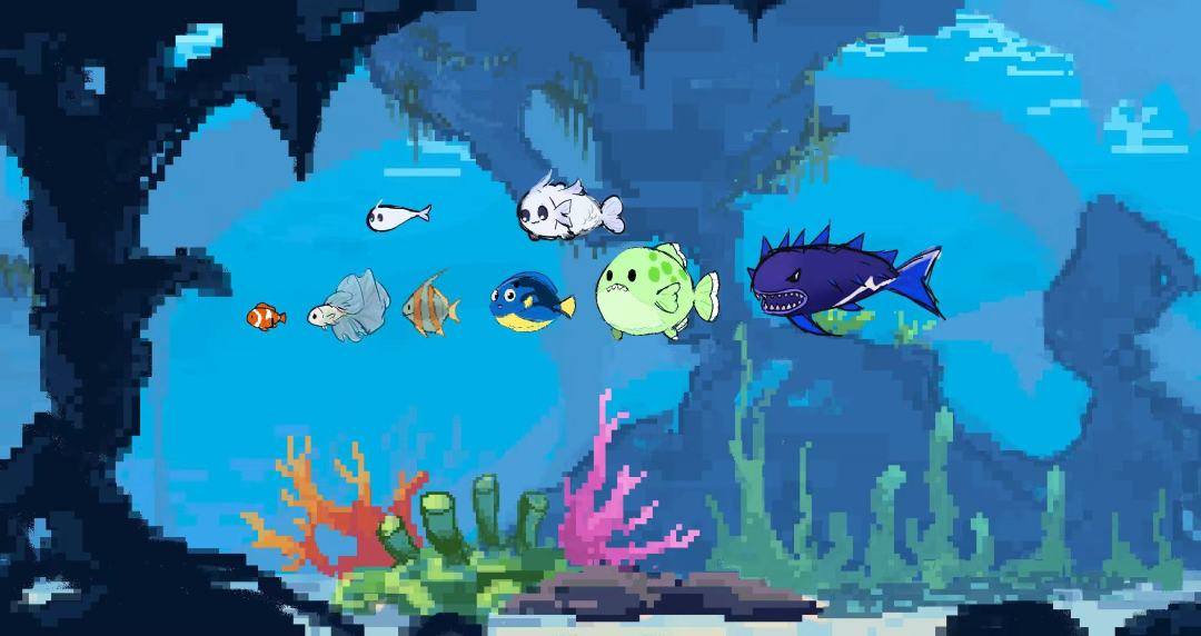 大家好,我们是三乘七工作室! 本期我们梳理了具体的游戏开发方向,并介绍当前的团队开发模式。 ⭐玩法方向: 以经典解压的童年回忆小游戏《大鱼吃小鱼》为参考,保留生存与养成的核心玩法,以全新的关卡设计和看似“BUG”的创意机制,打破玩家的固化思维,创造源于经典而不止经典的体验创新! ⭐初步立意: 作为海洋生态食物链的一部分,小鱼的任务是躲避危险,”干饭“成长! 而当8-bit的像素鱼游过布满噪点的深海