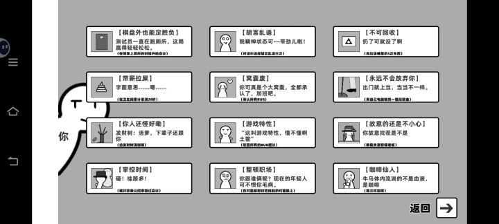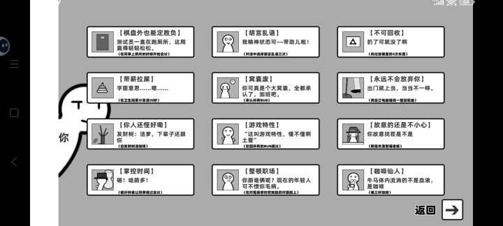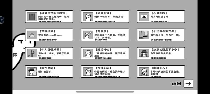 1.简约的黑白灰三色系画面,以及十分简约的人物形象,还有虽然简单但很明了的游戏场景,比如厕所(bs😈