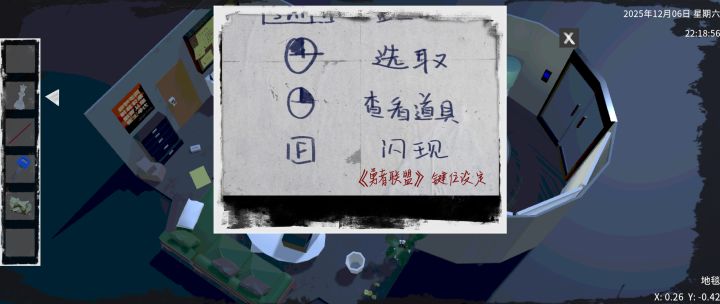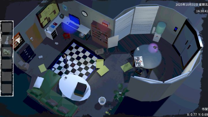 3D解谜类游戏,固定摄像机视角,俯瞰状态下整个房间一览无余。键鼠同时操作,线索需要主角靠近后才能触发搜索,找到线索并不难,难点在于如何利用现有线索来破解谜题。作者脑洞有点大,线索如何联系起来形成谜题答案非常烧脑。有基础操作介绍,内容并不复杂,摸索一下也能很快上手。