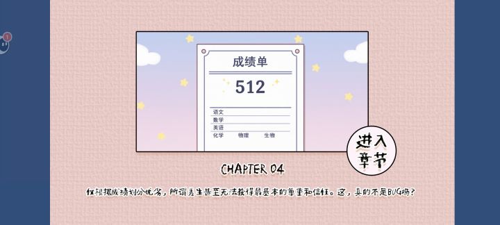 2D卡通画风,界面结构简洁清晰,UI类似色块。角色卡通风立绘品质不错,有简单表情变化,突出剧情效果。场景相对单一,突出家和学校两点一线的行为轨迹。学科成绩展示很清晰,全是黑色字体,要自己对比是否达标。