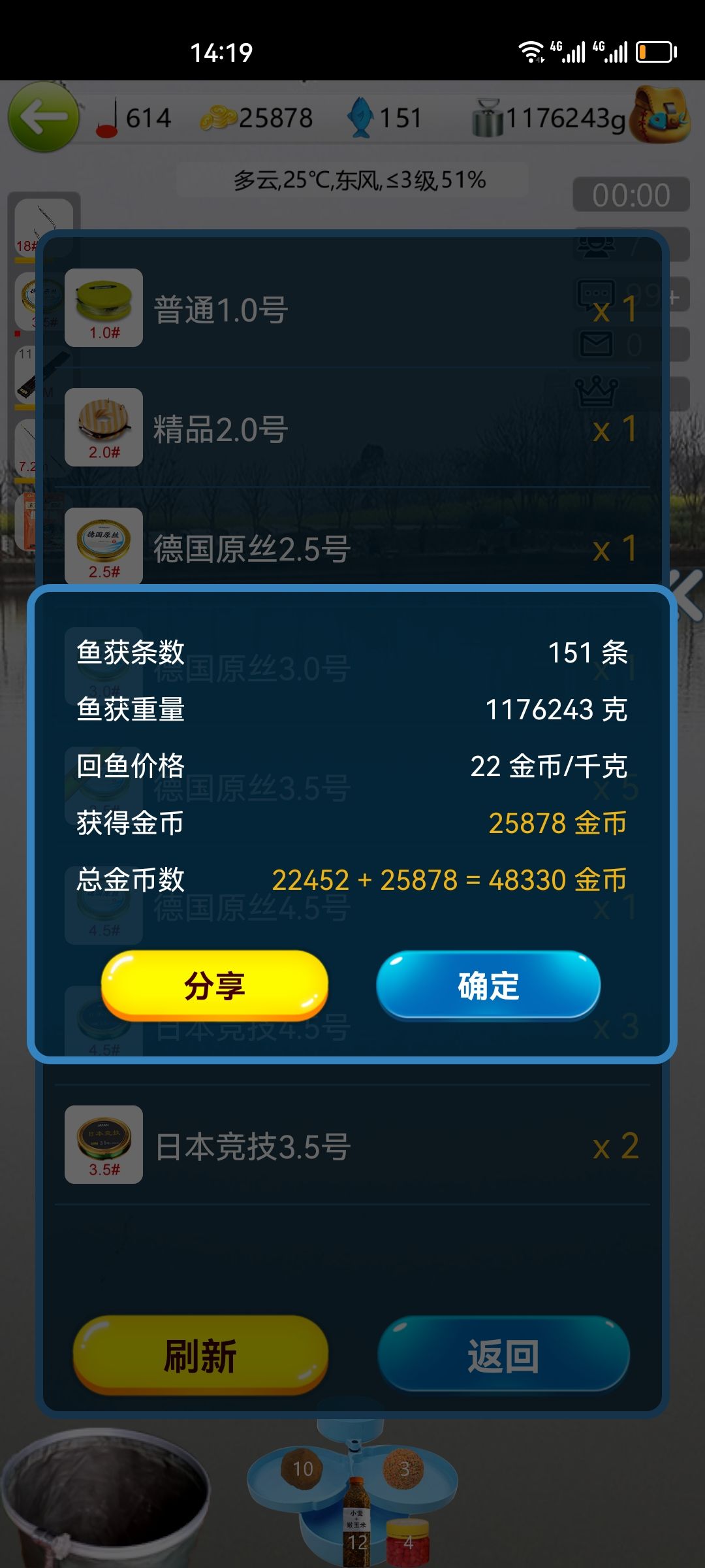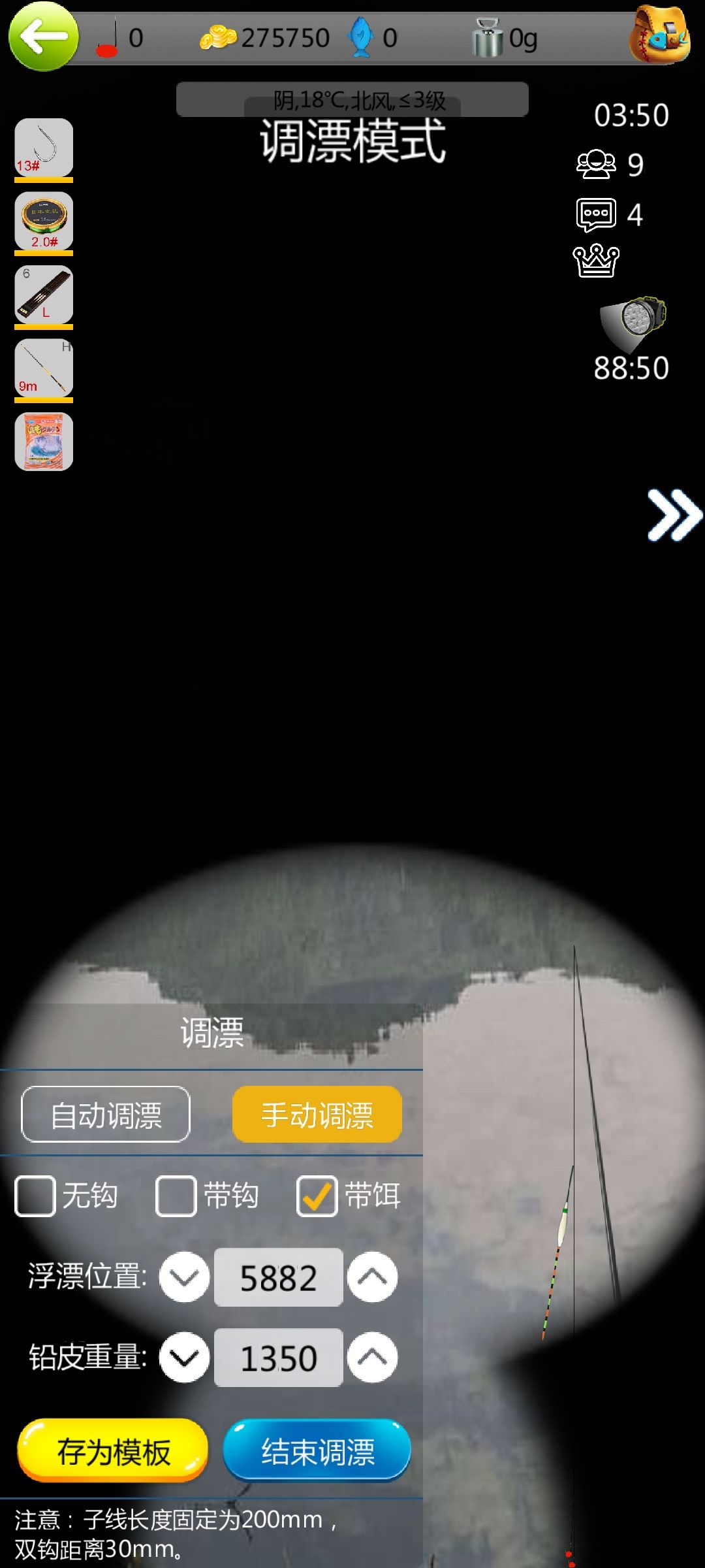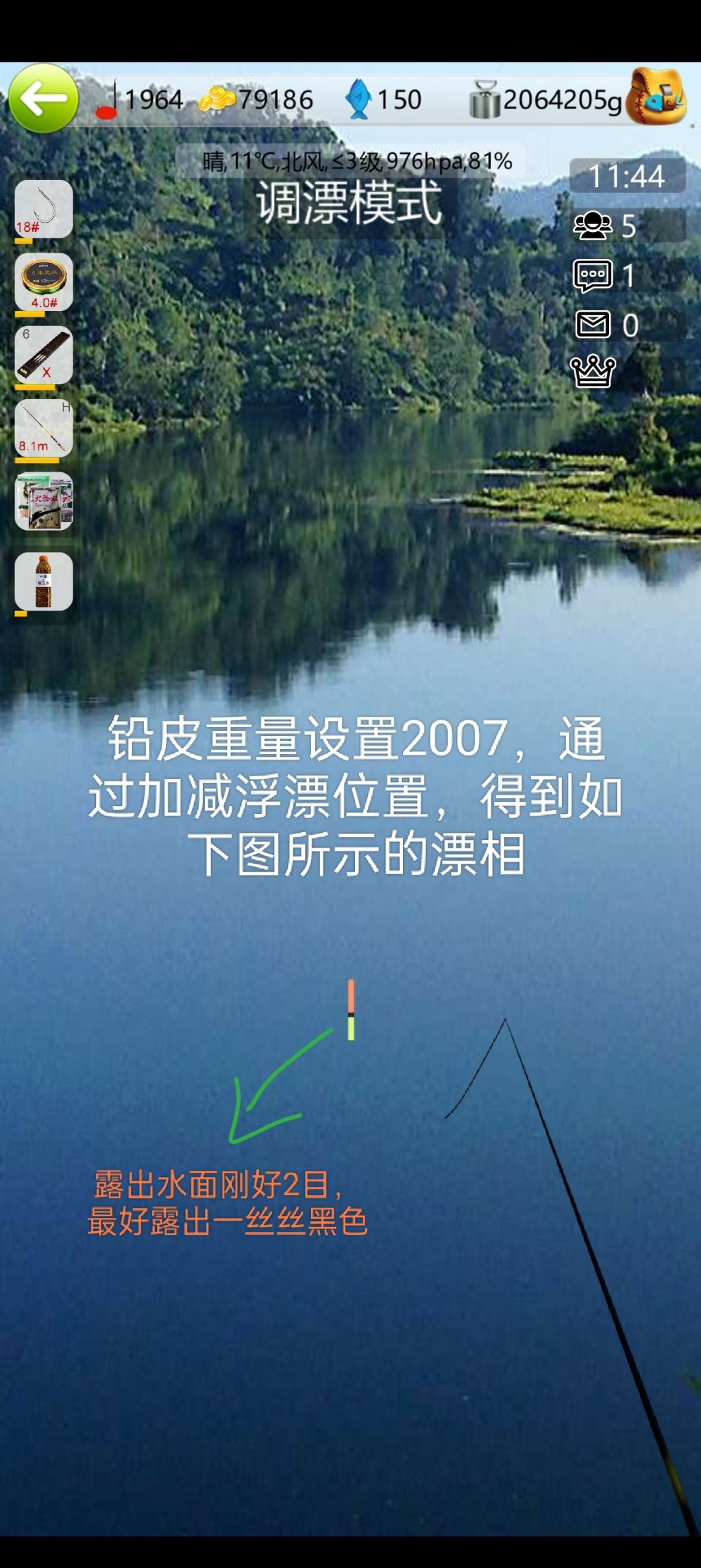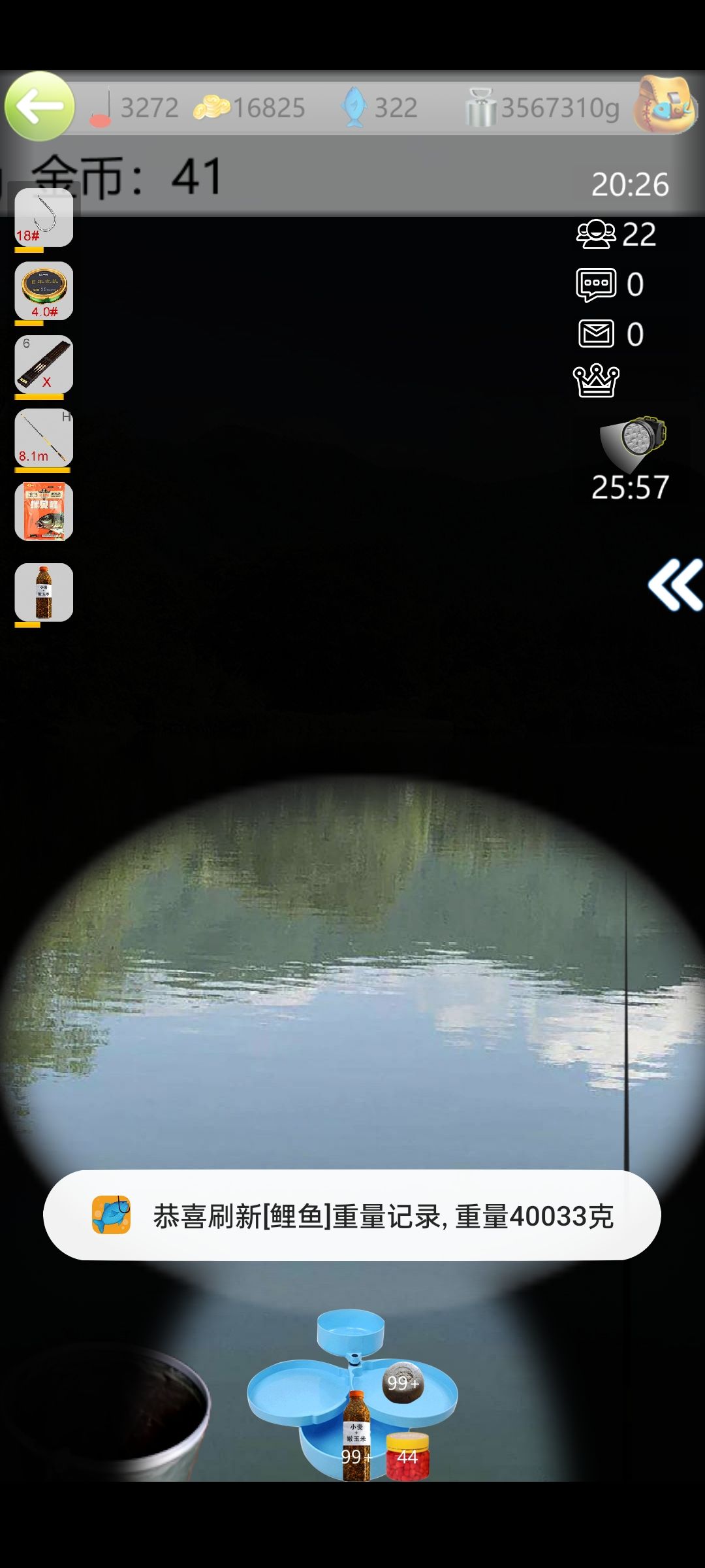 5、进去水库前点击详情,看下当前用户数(人越多鱼情越好) 水库推荐9米杆、5金币的饵料、80金币的窝料、12号伊势尼、2.0的小日子线、6目纳米大号漂。一直钓到三五千金币可以去小试一下黑坑了。