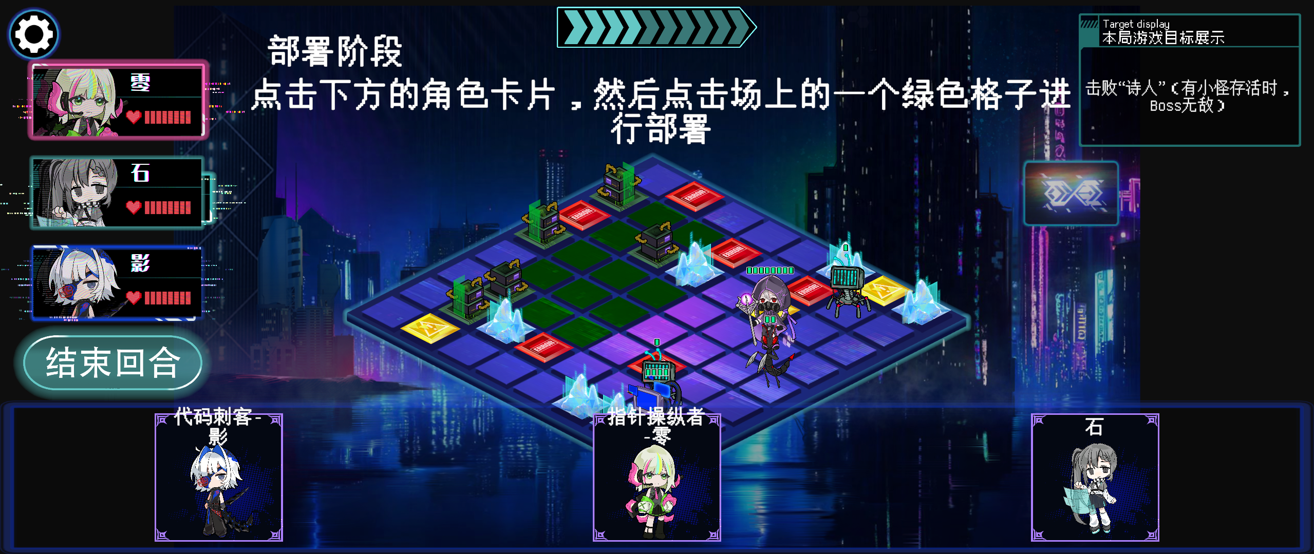 是一款战棋类的小游戏,有文字引导加上机制也没有很复杂,比较好上手理解,三个可控角色有各自职业分工,赛博朋克的美术风格巴适好看,剧情文案也很有看点和深意,值得推荐。