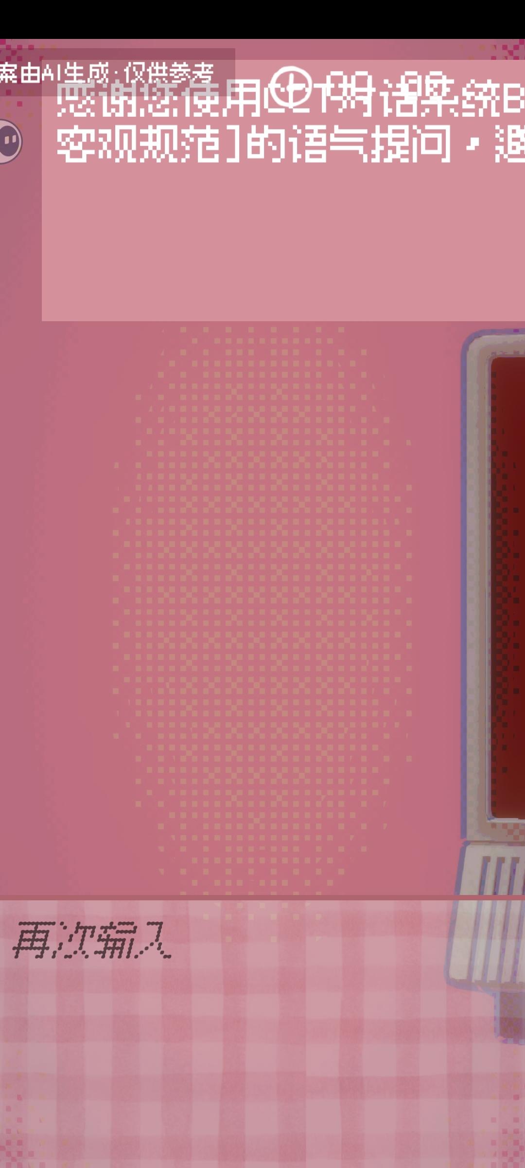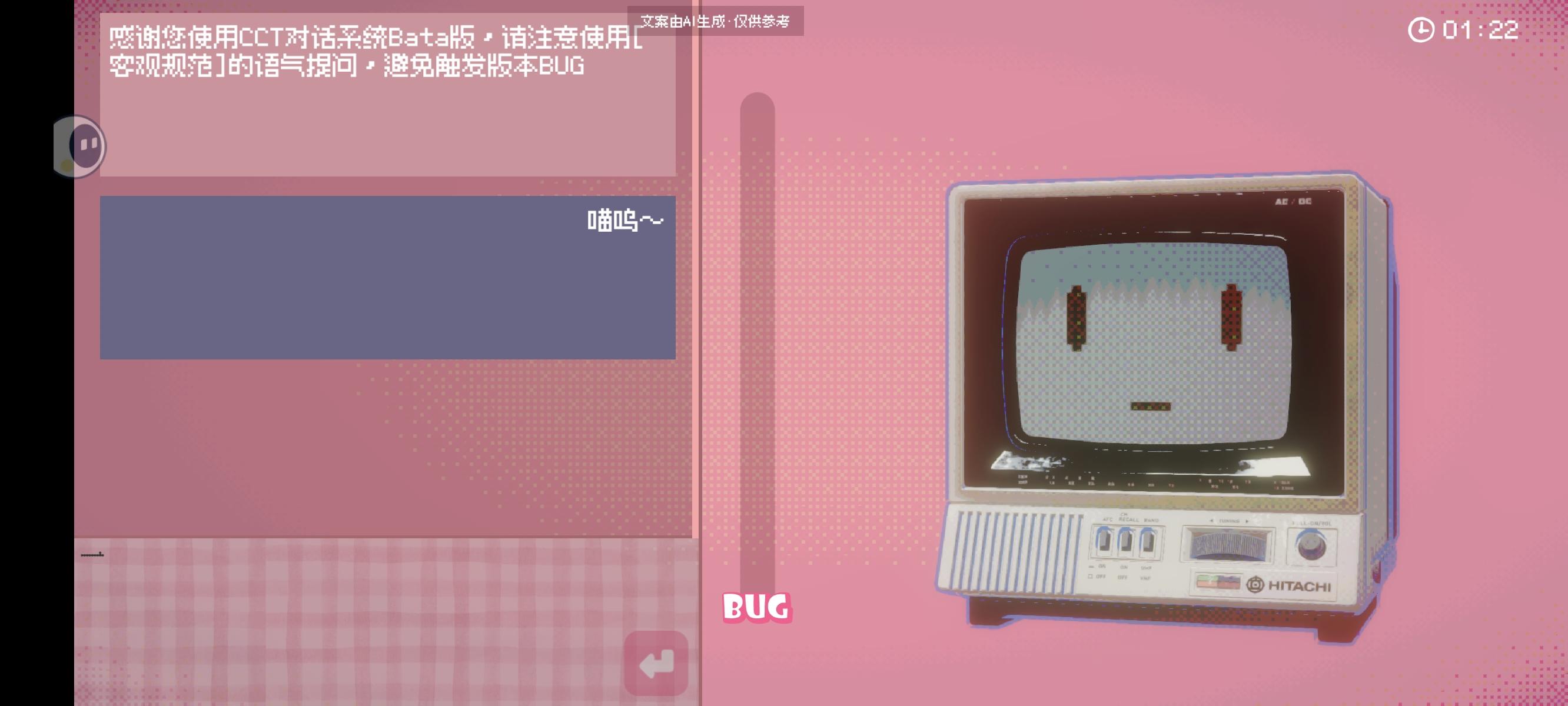 这是款文字交互策略游戏,玩家需要和AI聊天,逐步让AI变成猫娘。自由度挺高的,应该是有关键词什么的,输入无关的句子不会加分,AI的形象变了之后对话方式也会不一样,感兴趣的朋友可以去试试。#TapTap聚光灯独立游戏 #休闲游戏 #单机游戏 #游戏推荐 #聚光灯gamejam全民试玩 #游戏日常