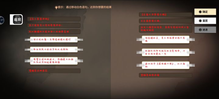 官方聚光灯 - 旅行者 : 感谢你的支持! 你精准的说出了我们因为时间砍掉的内容,我们最初计划有参考杀死公主的多结局,文字游戏的扮演文字解密,baba is you的语义推箱子解密,但通通砍掉啦! 背景故事:我们队伍大部分老师都是工作之余,21.30下班到家,周六有时候还要加班,这次gamejam 实际也就30多小时开发时间,加上一共7小时的开会讨论,所以内容量有限,也没有足够的时间打磨故事,没有足够爽感,之前设想的更多形式的关卡解密以及根据不同选择,解锁不同分支结局也砍掉了。 (狡辩但没有解决实际问题 狗头保命.jpg)