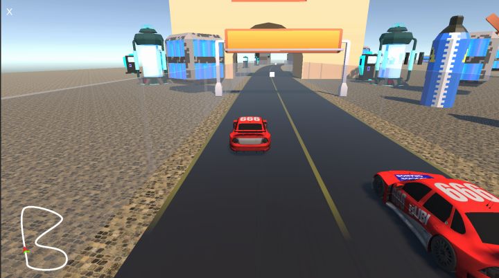 >> 游戏进展大家好,这次带来《Glitch Racer》的第三篇开发日志!这一阶段最大的进展是:第一关的赛道终于能完整跑起来了!赛道是通过Unity的曲线工具制作的,目前的版本是一个B型赛道。我在其中加入了几个 AI 对手,他们现在还不太聪明——有时候会撞墙、也会乱开——但至少不再是孤单地一个人绕圈。为了让画面更有赛博感,我在场景里摆放了一些霓虹风格的建筑和灯光元素。整个城市开始“亮起