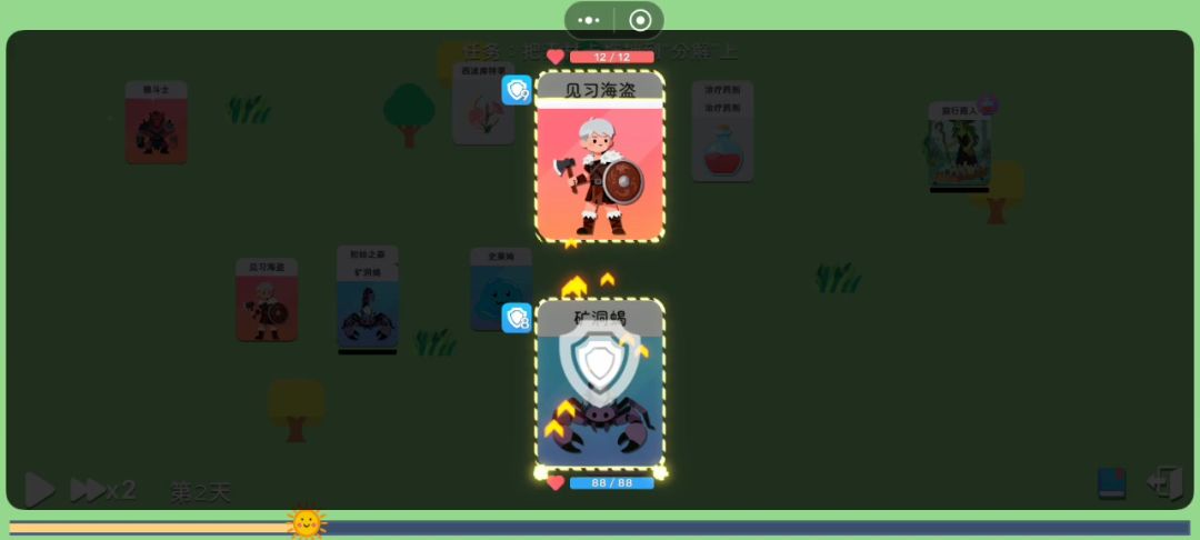 物理攻击和防守术这两个配合是有什么bug吗,一直都在加盾,不会攻击了🤦♂️最后平局收场。养了一堆敌对生物[表情_吃瓜],要不出个手动模式吧,自己选择使用什么技能,或者战斗前暂停做战术调整