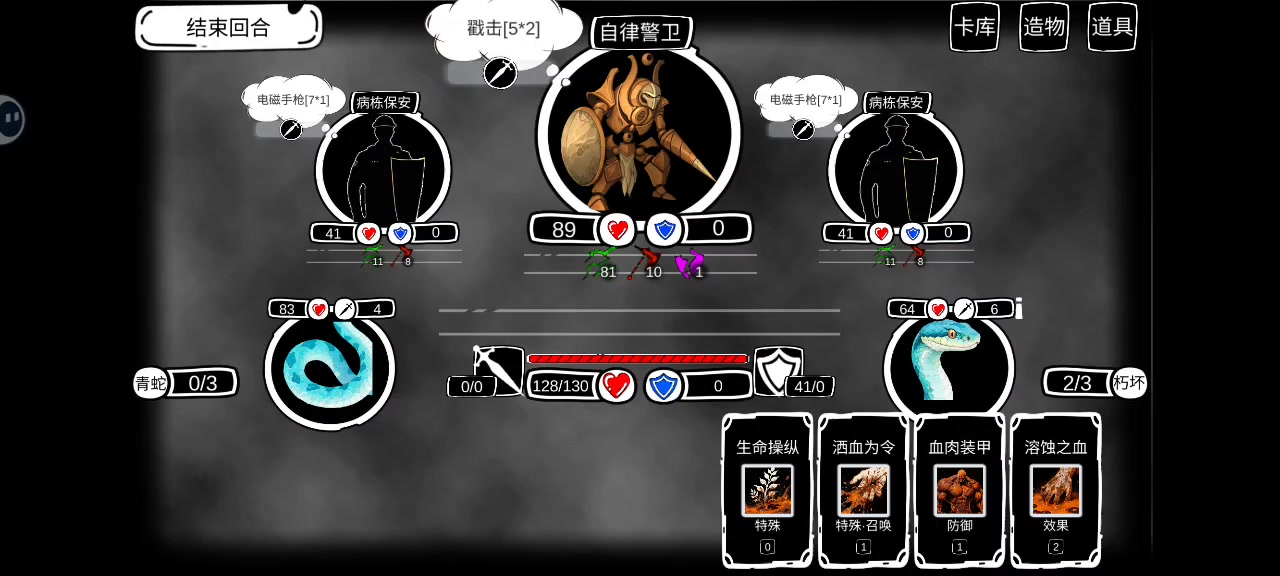 依旧是1.3版本识海,其实开始没录到想自杀,只让蛇的本体打它,结果发现蛇快把识海咬死了,只能退出重新录,难绷 造物:青蛇慢性中毒(叠中毒)、本性显现(你游蛇王,抗伤,输出集一体)、衰弱之毒(有用,但其实不多)、太阳:不死鸟(配合蛇王,30%以下肉得一批) 卡牌:青蛇:肆意挥洒(叠中毒)、盘据(过牌)、绞杀(输出)、妖术修(拿牌)、急速恶化(翻倍中毒)其他拿些0费用配合妖术修和1费的牌上毒用) 太阳