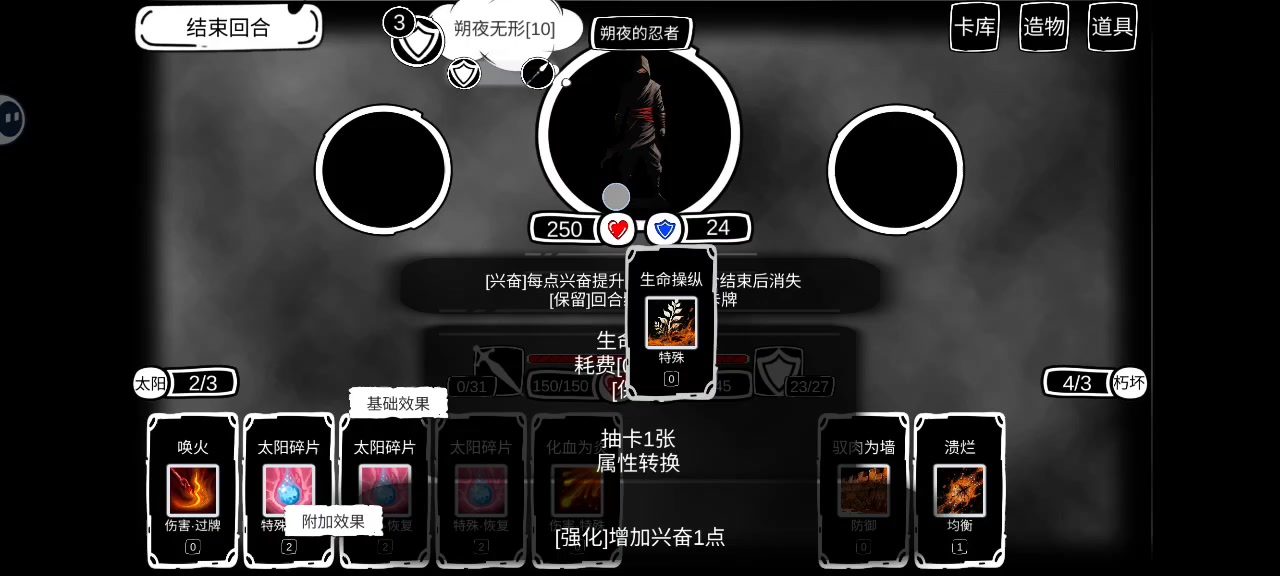 虽然1.4版本被削了,但是1.3未削版本也不我妨碍打识海 本打法核心是叠力量,打爆发 造物:可以拿疯狂末路(叠被动)、共时狂热(前期过渡)、毁灭化身(前期过渡)、属性强化(为了拿力量)、升格(叠力量),可以拿这几个[注:我不会玩太阳碎片,会玩的可以自己试试] 卡牌:[太阳]骤然爆发(主输出)、不落日(叠输出)、灼甲(上buff)、灼疗(回血,叠被动,清负面buff)、净化(抵抗自己的燃烧和抵抗对面