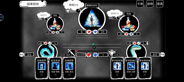 总的来说,游戏的难度不算高。但有些怪机制一言难尽。比如限制你出牌的BOSS ,你们能想象刷了一辈子“过牌类型的卡”没刷到伤害牌的感受吗?还有爱丽丝剧情里,有一个怪非常恶心,上来就把你变成一滴血,把他打死了也不会给你回血。如果没带回的卡组的话血,真的难受的要死。而且他是随机可以连续碰到的,就是说知道你勤见神明之前可以碰到三次。 5个多小时,总算是把这游戏通关了,只是通关的话,不需要多高的等级,差不