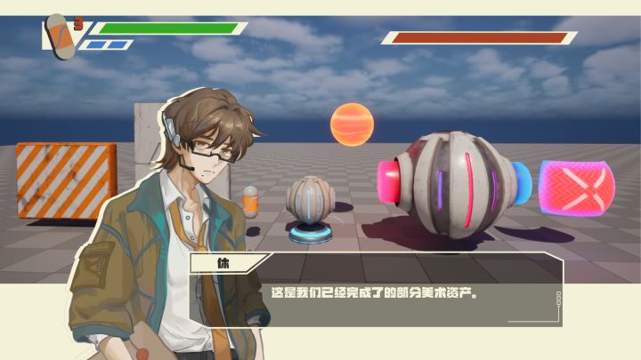 在经过了近10天的努力后,我们终于确定了具体的方向,并开始全力的投入进当前玩法与关卡的制作中。剧情上房贷清零的社畜“休”,在废土星球遭遇强制招募,为拒绝成为 “新星球开垦先锋”,开启了对抗执法机器人的逃亡之路,却逐渐揭开 “摇篮计划” 的致命骗局。而上面就是我们的UI与人物立绘!(主角的黑眼圈好严重hhhh)而我们的玩法是操控一个球型飞车在关卡中横冲直撞,闯关重重难关,历经九九八十一难,最终