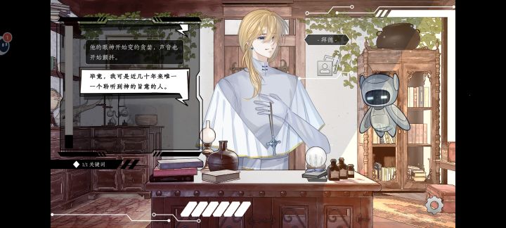 程序员修bug居然修到了异世界,设定也是挺新奇。核心玩法是文字冒险,主角穿越过来是个魔法店店主,根据客人对话文本线索找到事件关键信息,带有制作功能,可以给与顾客们想要的物品,没有找到关键信息会扣除下方能量,从而导致游戏失败。机器人充当了半个新手引导员的角色,主要功能有介绍,但还有一定自己摸索。