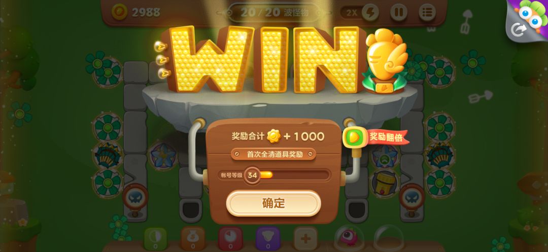 1、这一关的地图有两个出口,但是道具比较分散,首先利用太阳花全方位的清理道具,利用火箭来攻击怪物。 2、道具全部清理完成,冰冻星星有着决定性的减速作用,所有非常顺利。 3、轻松通关获得金萝卜和全部奖励。 原帖