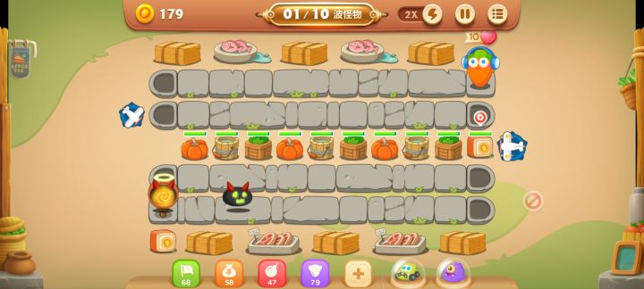 由于这关出现了两座大道具,而且我在这关所建的炮塔比较少,我就无法更快的清理这关的道具。都是因为这关出现了很多呆兔都需要用很多炮塔来打败。#保卫萝卜#保卫萝卜4#游戏解说#攻略#塔防