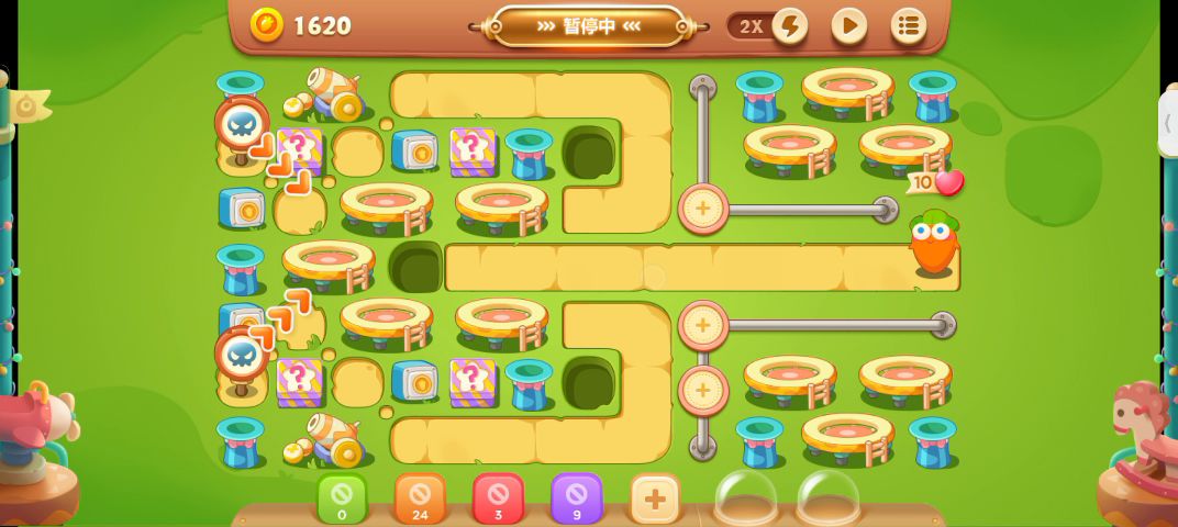 目前就这关容错率高且收益不错(其他关卡要么气球没法拿全,要么容错率低经常10体力打水漂),可以很容易做到不漏气球的全清金萝卜(气球直接导弹自动打,金币富余很多)