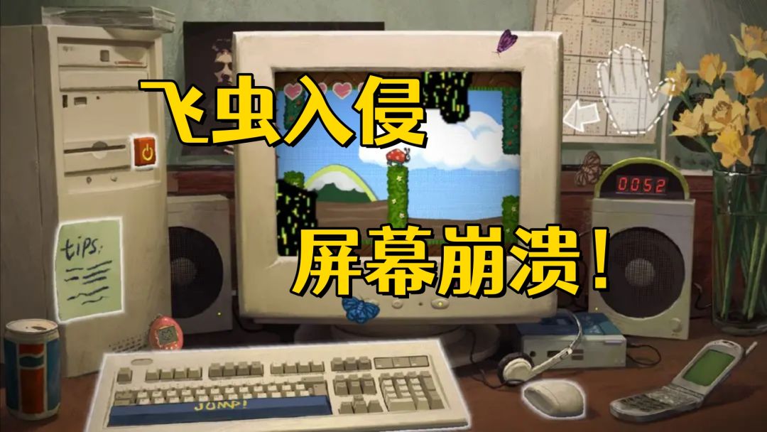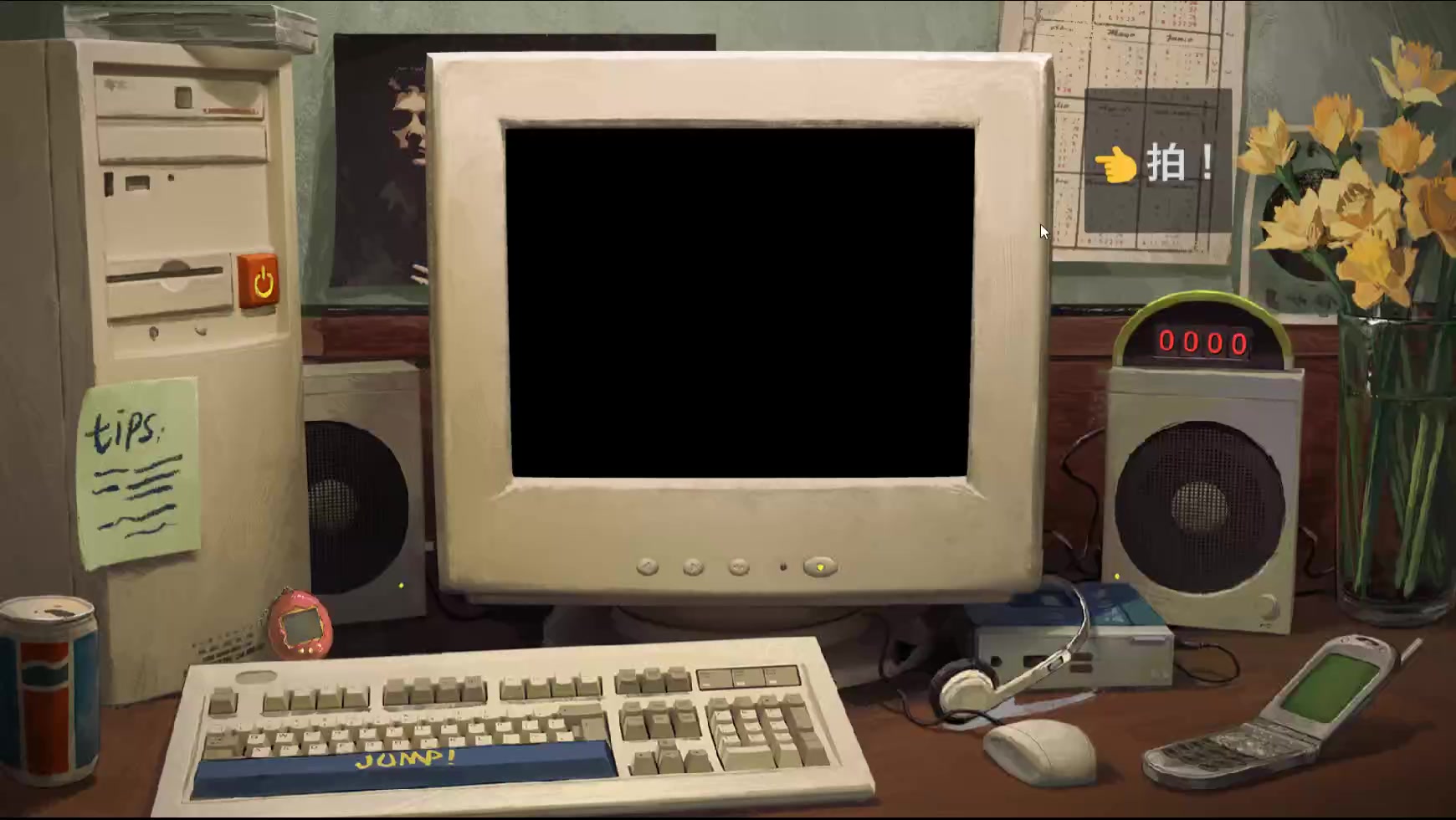我们游戏的主界面资源到货啦!替换了资源后的游戏画面非常地有质感给大家介绍一下与美术设计沟通的一些想法画面主要以操作电脑的第一视角为主要视角,设定的时间年代大概是八九十年代,所以整体画面会往复古风走,电脑、摆设以及背景的部分都参考了当时会出现的一些物件以及成员们想要放入的一些东西小飞虫的资源还在制作中,目前只有一个类型的,设定上会随机出现不同样子的小飞虫小游