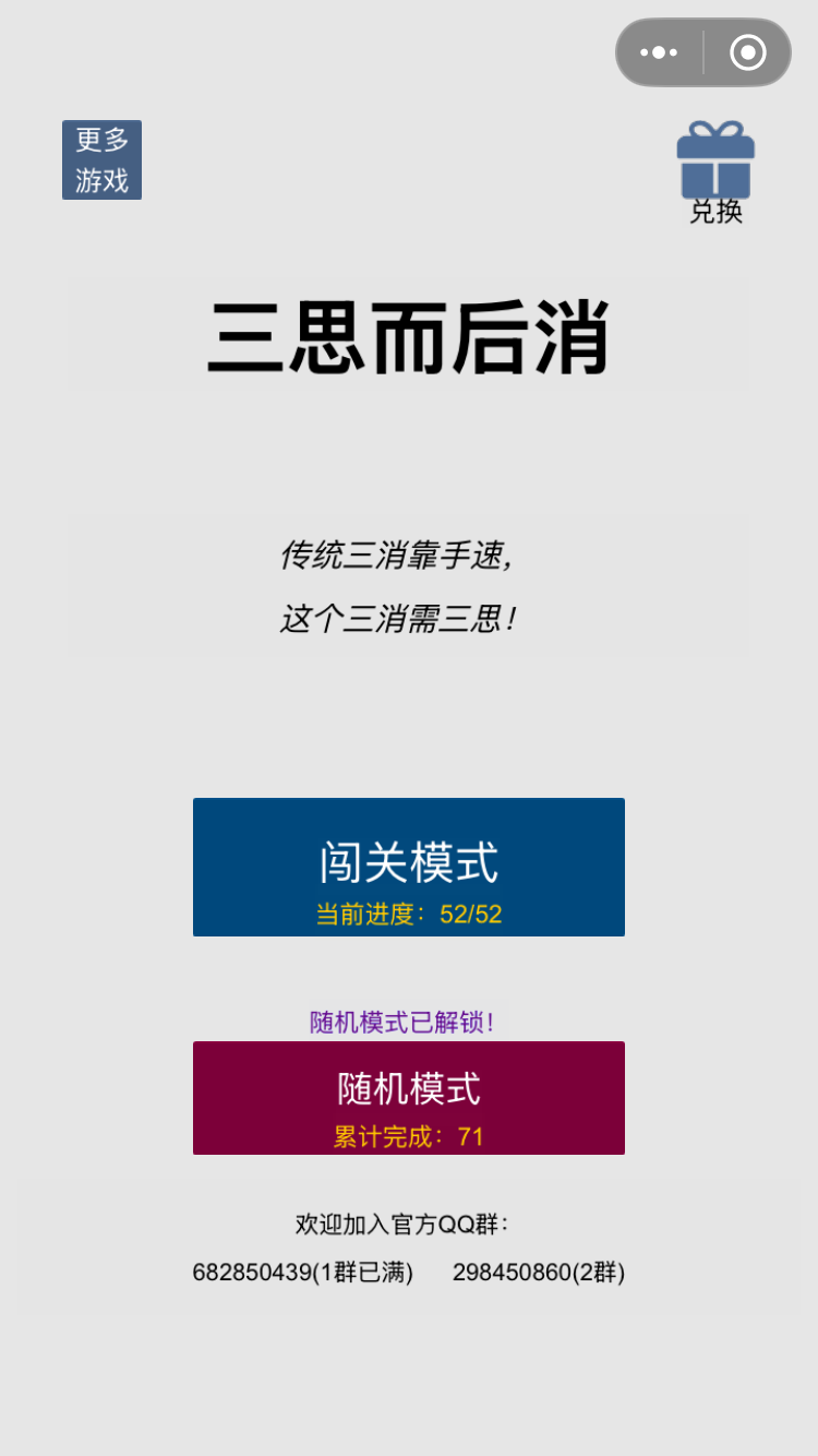 传统三消靠手速,这个三消需三思!我的新游戏《三思而后消》已经上线啦!欢迎体验!