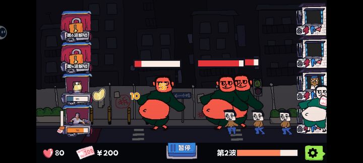 挺有意思的 除了第一次应该是必死之外 后面的关卡都有点小设计 例如开着摄像头所以免疫 只有暂停关掉摄像头之后才能打到伤害的小女孩;比如因为赶着送外卖所以免疫暂停的骑手(疑似吐槽了因为怕超时而不太遵守交通规则的骑手) ;例如刚放学的学生冲刺奔向小吃摊 但是会因为暂停而摔跤