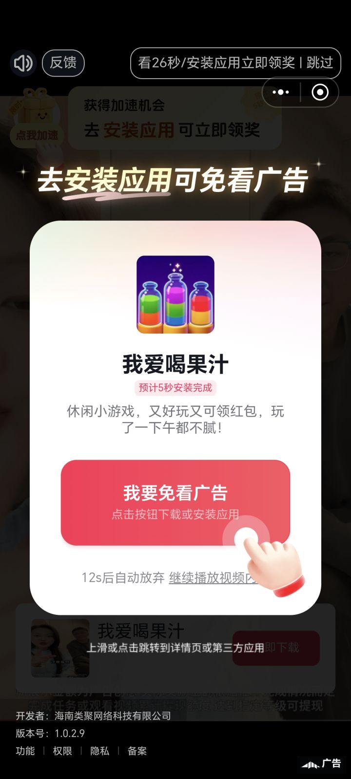 玩游戏看广告就够烦了,现在还来个广告套广告,必须下载或打开其他APP