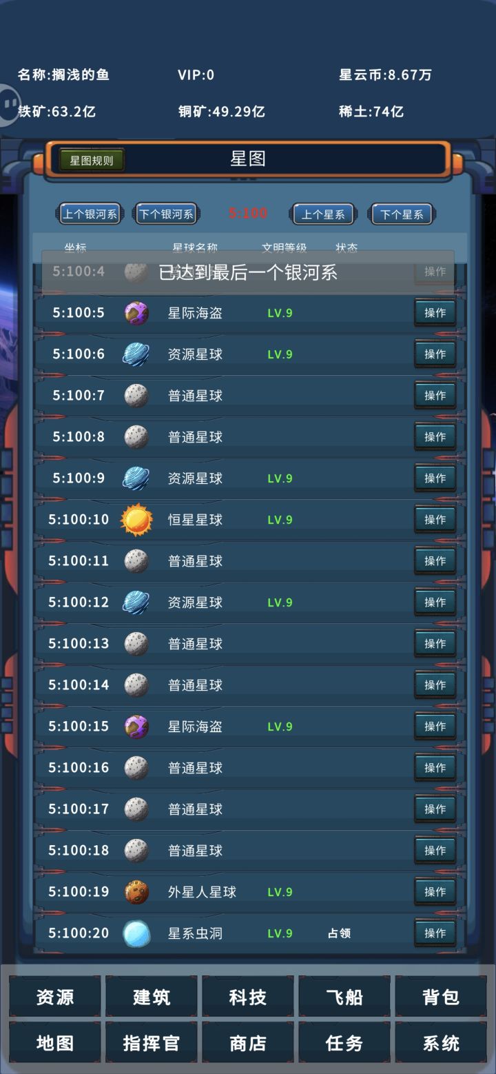 1前期别造船全力科技点把高级矿弄出来,用广告送的一个殖民船开7个分星球了2科技全满前别造船用送的船打资源星别去第二银河打不过船送了又要看一堆广告 3科技全满后开始出巡洋舰扫荡5级以下的恒星外星人,巡洋舰可以打虫洞直奔第五银河资源星一个2700亿再也不用担心矿干了. 4第一银河掉落垃圾文明点也少除了资源星前期过渡没什么打的必要 第二银河掉质量和直径可以卖星币一天能卖20万左右 第三银河掉空间和温度