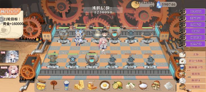 本游戏是一款卡牌+烹饪结合的策略经营自走棋游戏。游戏的主要玩法是通过在经营阶段购买食材、食谱和产线机器,将食谱和机器合理配置,从而在生产阶段自动制成成品预制菜盈利。【商店与食材页】在此页你可以购买各种类型的卡牌,其中食材卡购买后食材会直接进入商店区下方的食材库;产线卡、食谱卡、Bug卡均可直接购买拖入下方手牌区。升级商店可以使更高星级的卡牌被刷出。【食谱与bug页】在此页你可以将食谱卡和