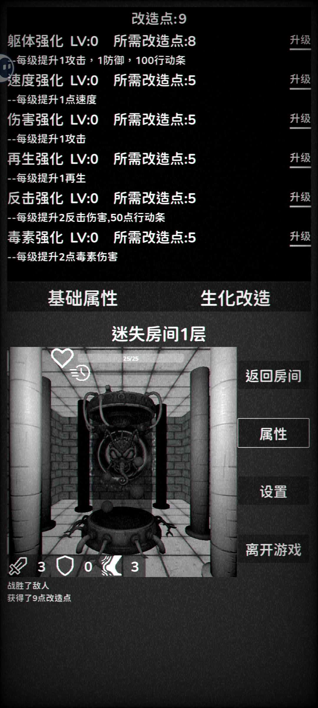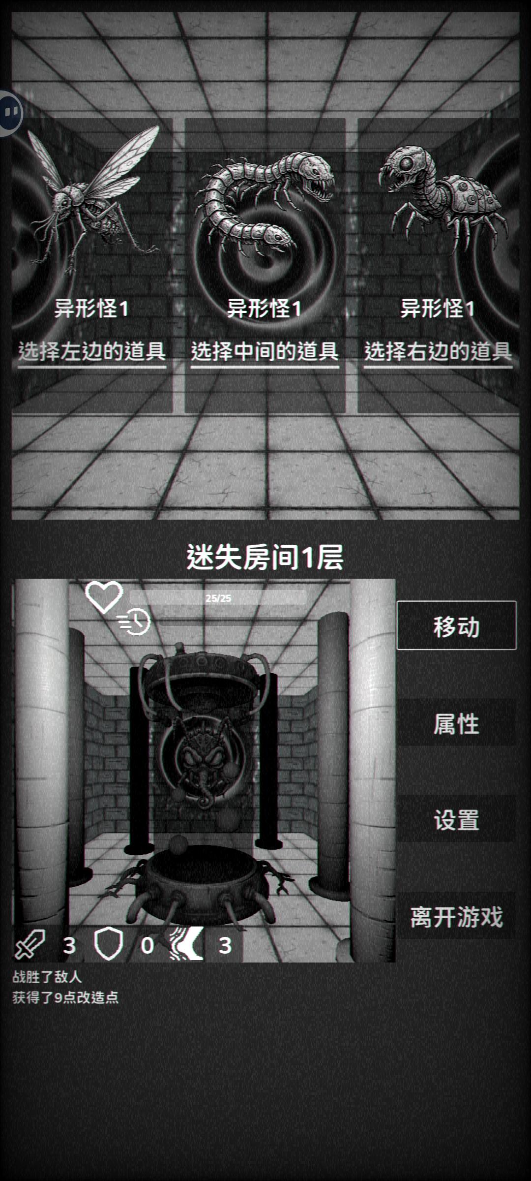 有个bug,如果遇敌三选一阶段,不选择敌人而是点移动,就可以在当前房间无限刷怪,当然因为本来就无敌了,这并没有什么意义。
